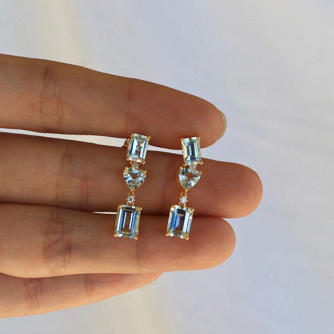 - 6 Pieces Aquamarine|Sky Blue| Emerald-Cut & Heart|Eye Clean