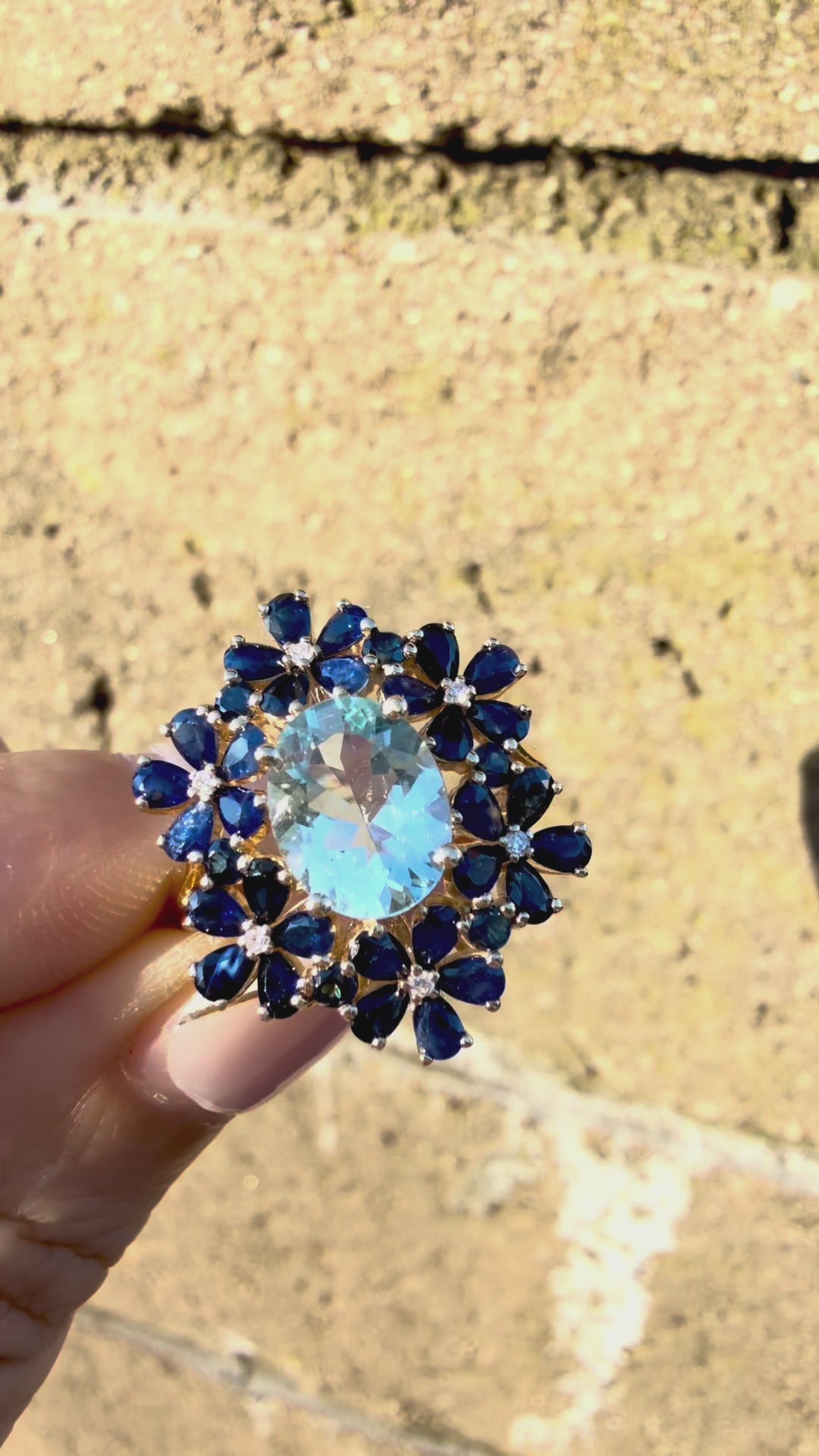 Aquamarine Sapphire Diamond Blossom Cocktail Ring