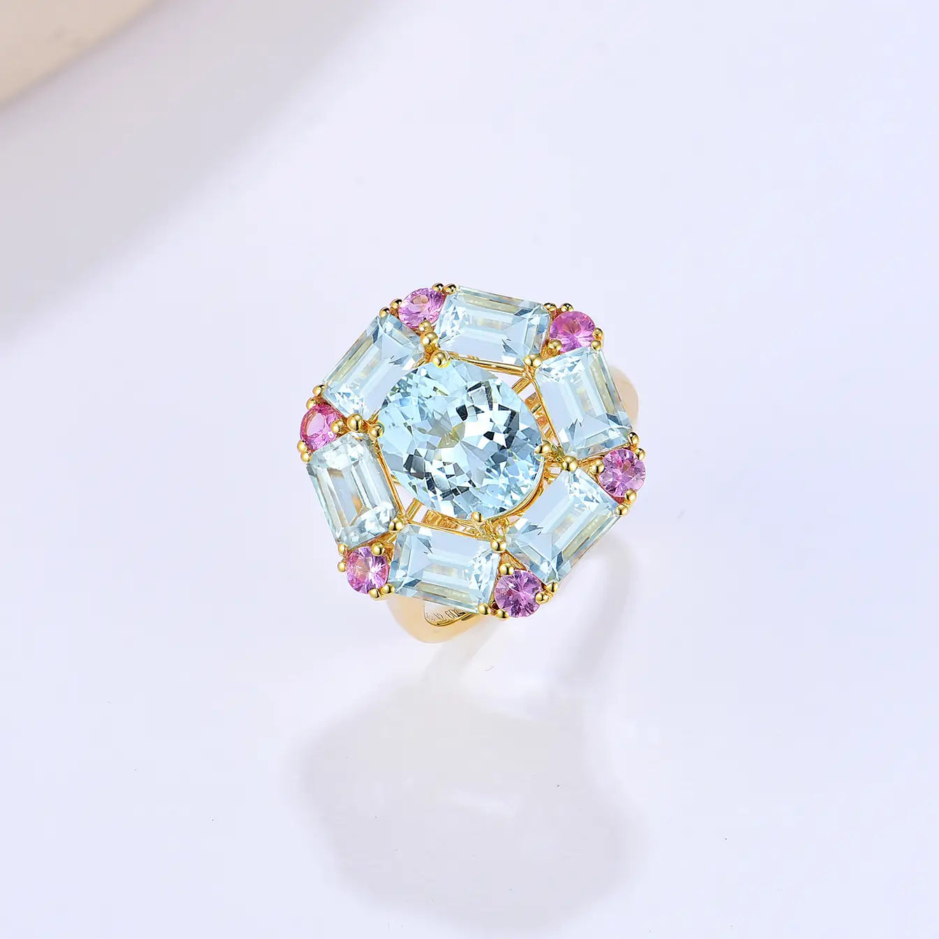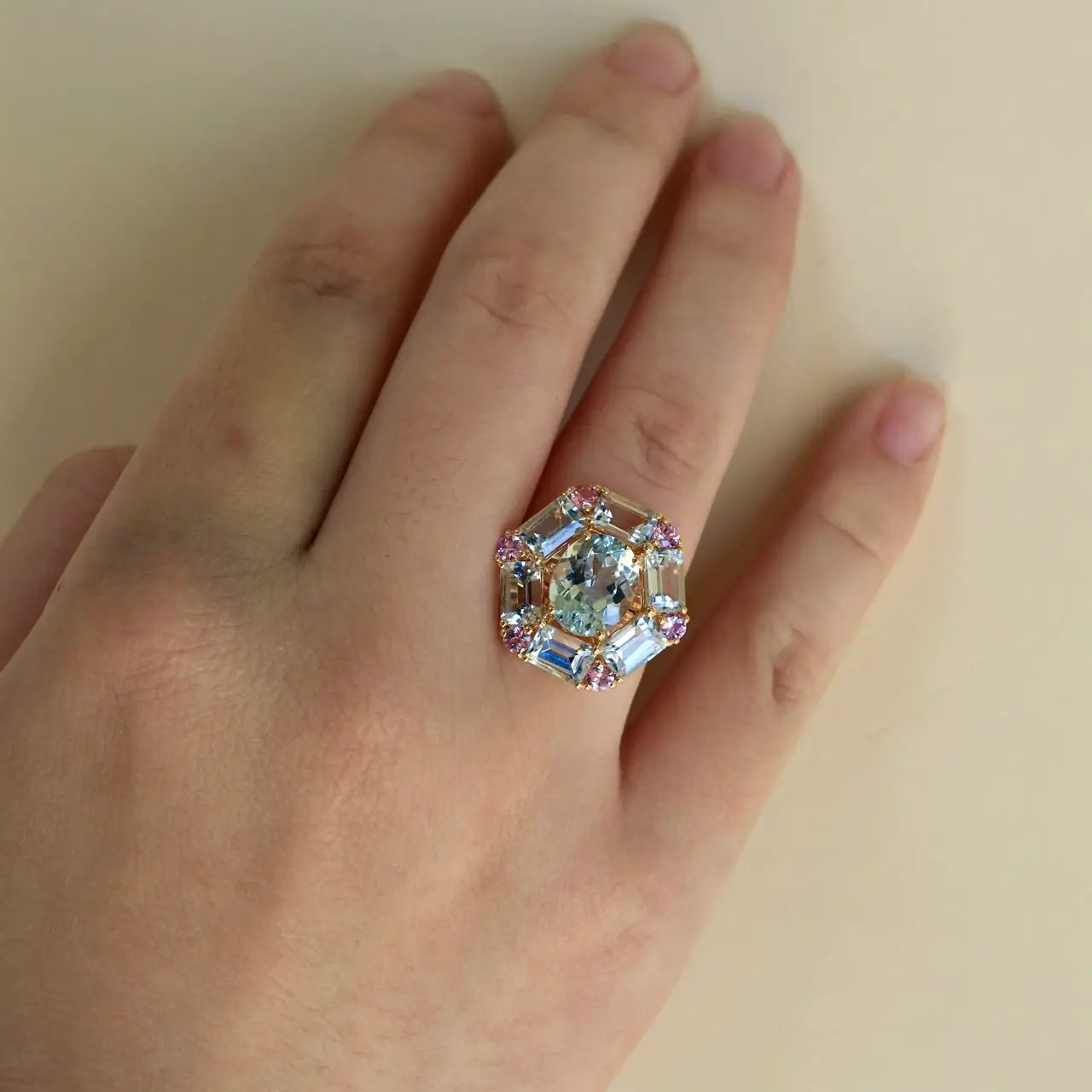 Margaret Aquamarine Pink Sapphire Cocktail Ring