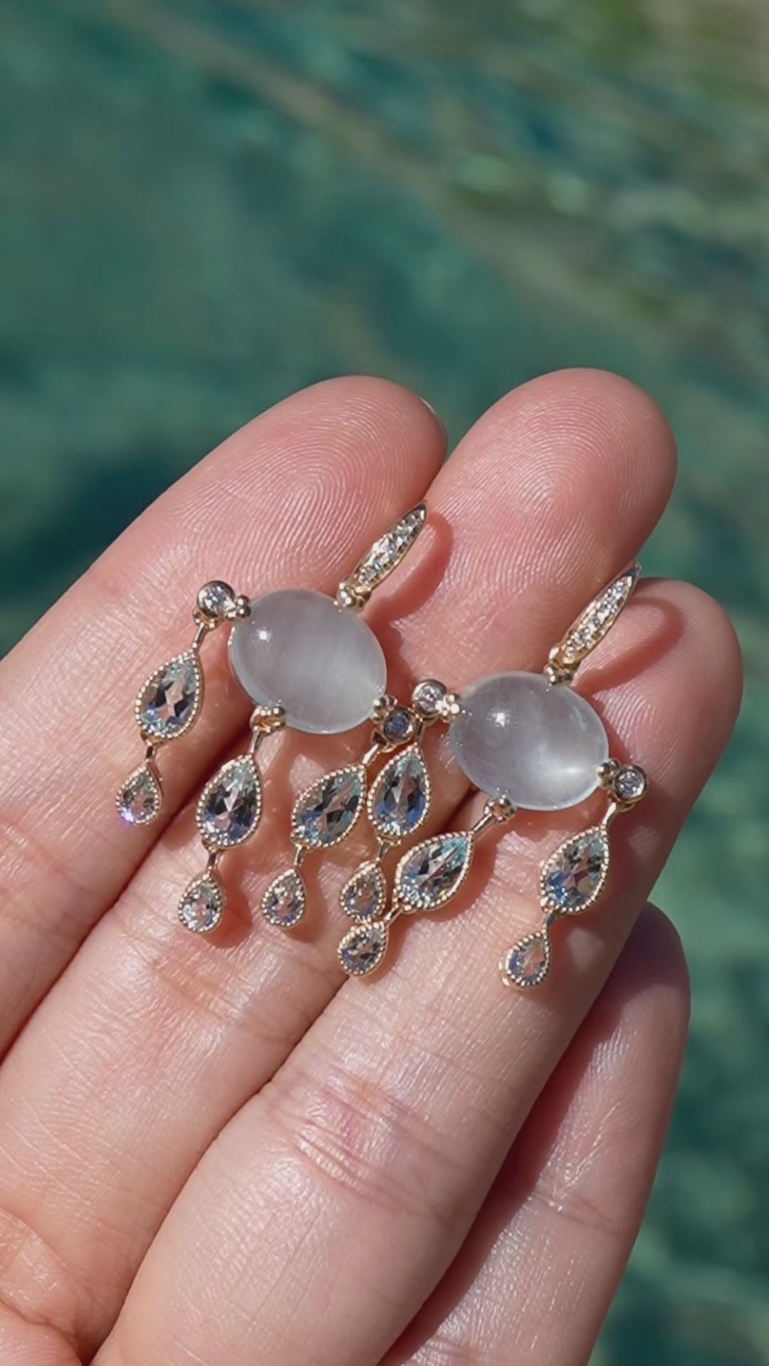 Rainy Day Aquamarine Diamond Chandelier Drop Earrings