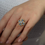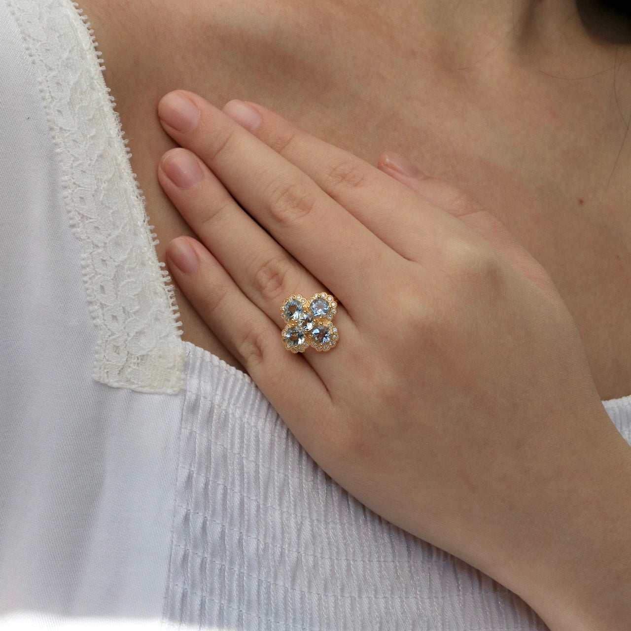 Aquamarine Diamond Vintage-Style Clover Cocktail Ring