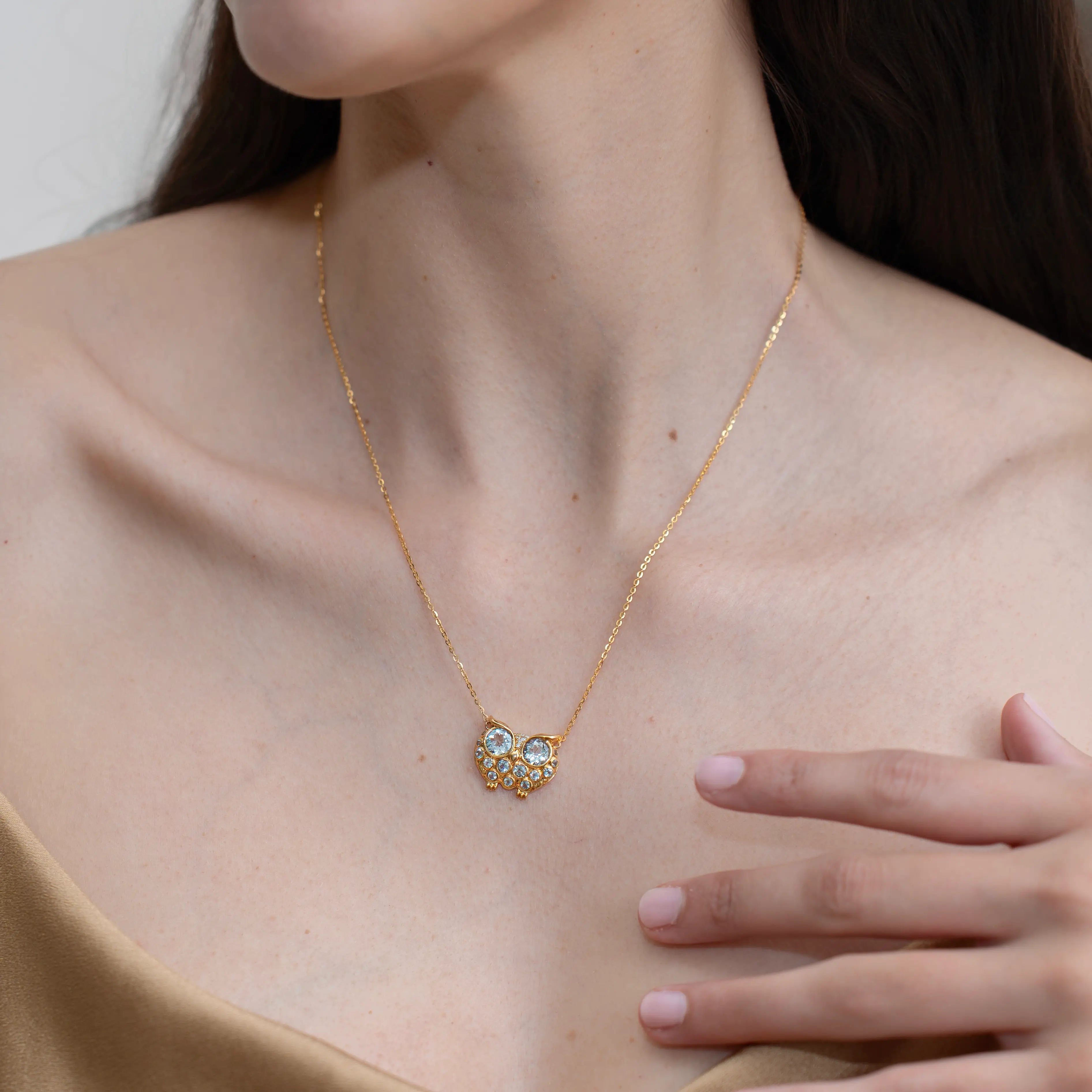 Fantasy Aquamarine Owl Pendant