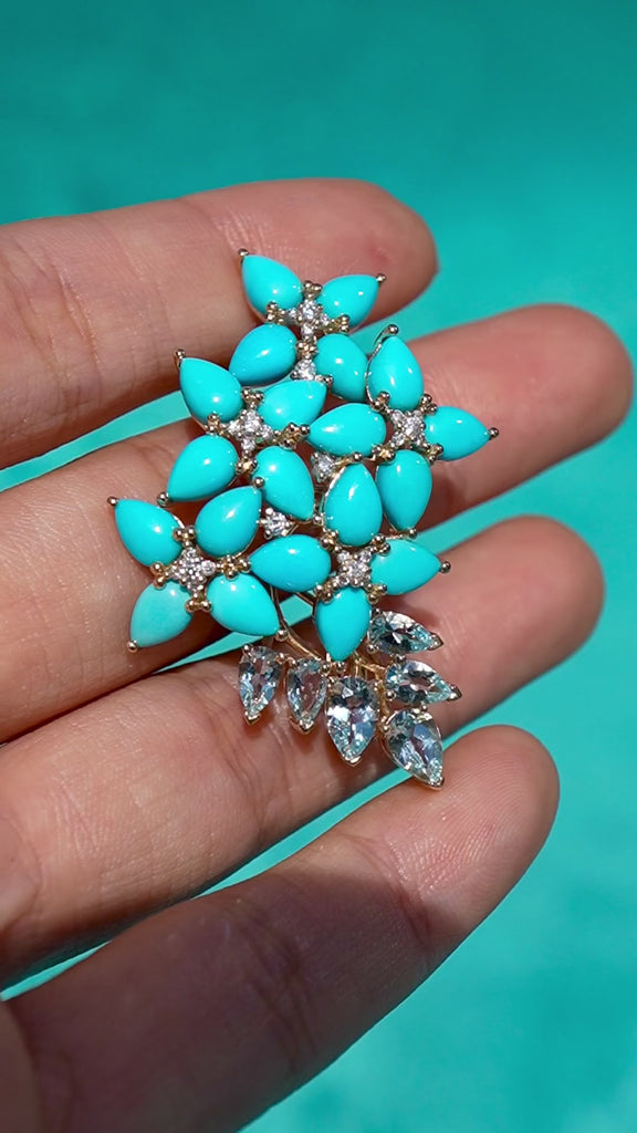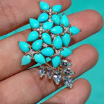 Hydrangea Blossom Turquoise Aquamarine Diamond Convertible Brooch/Pendant