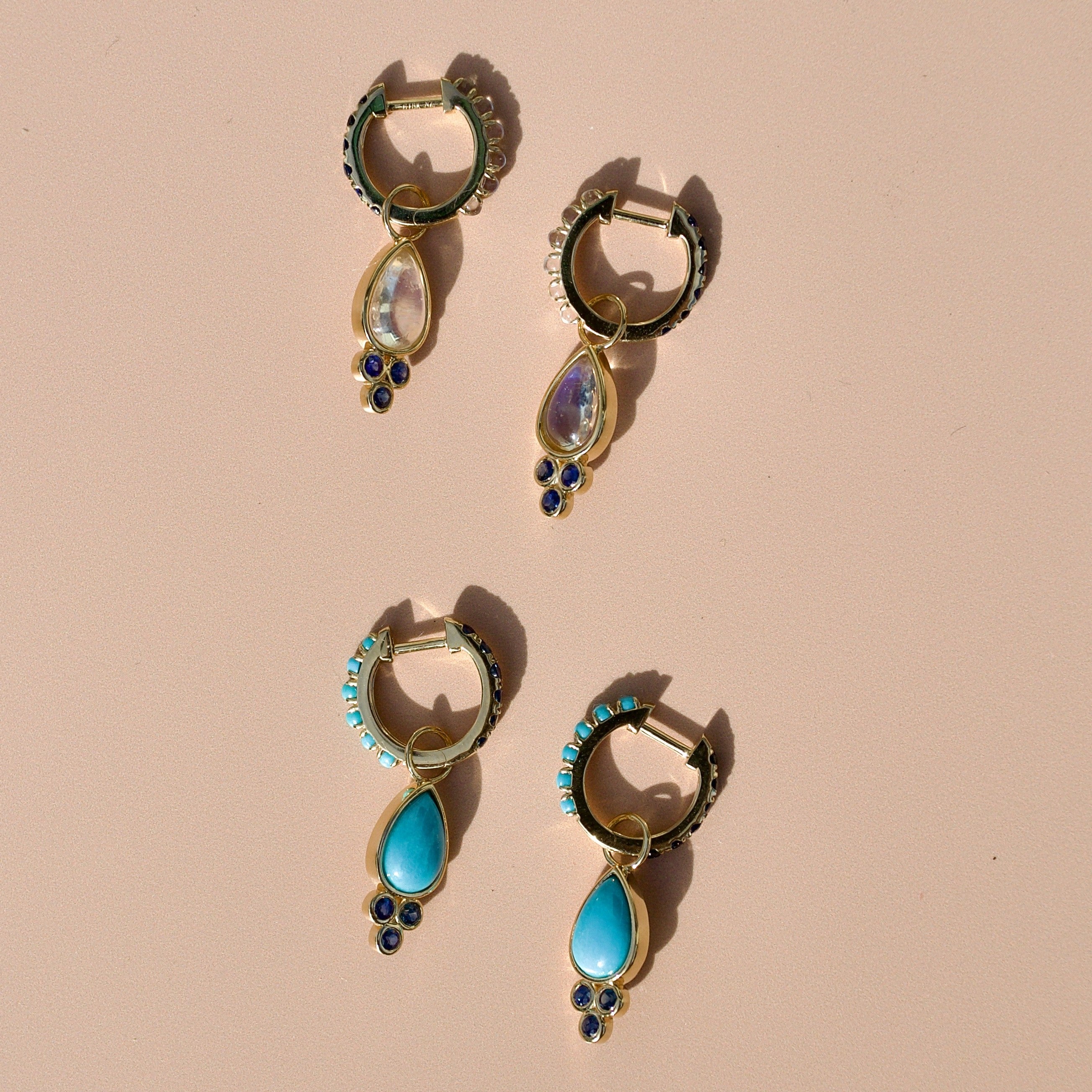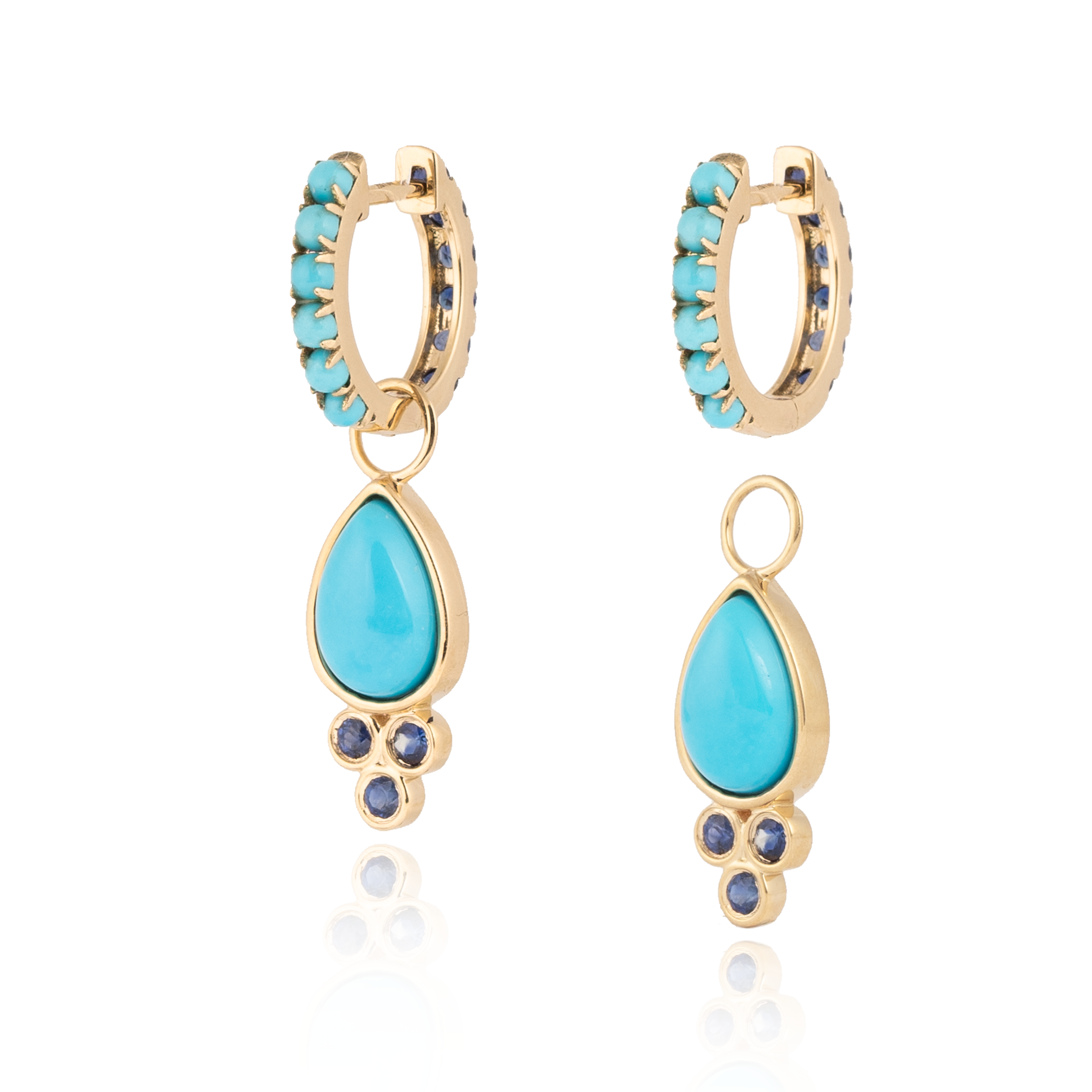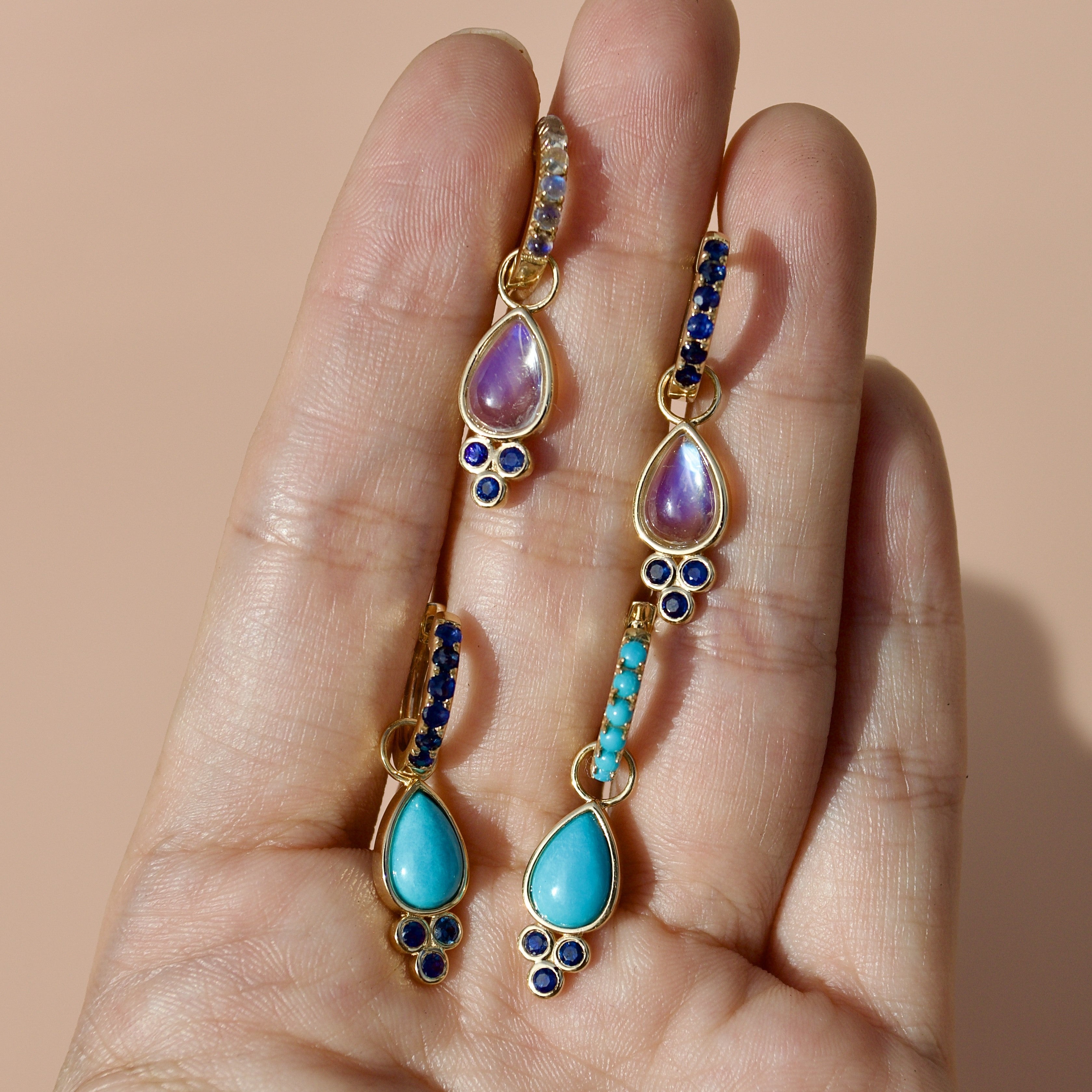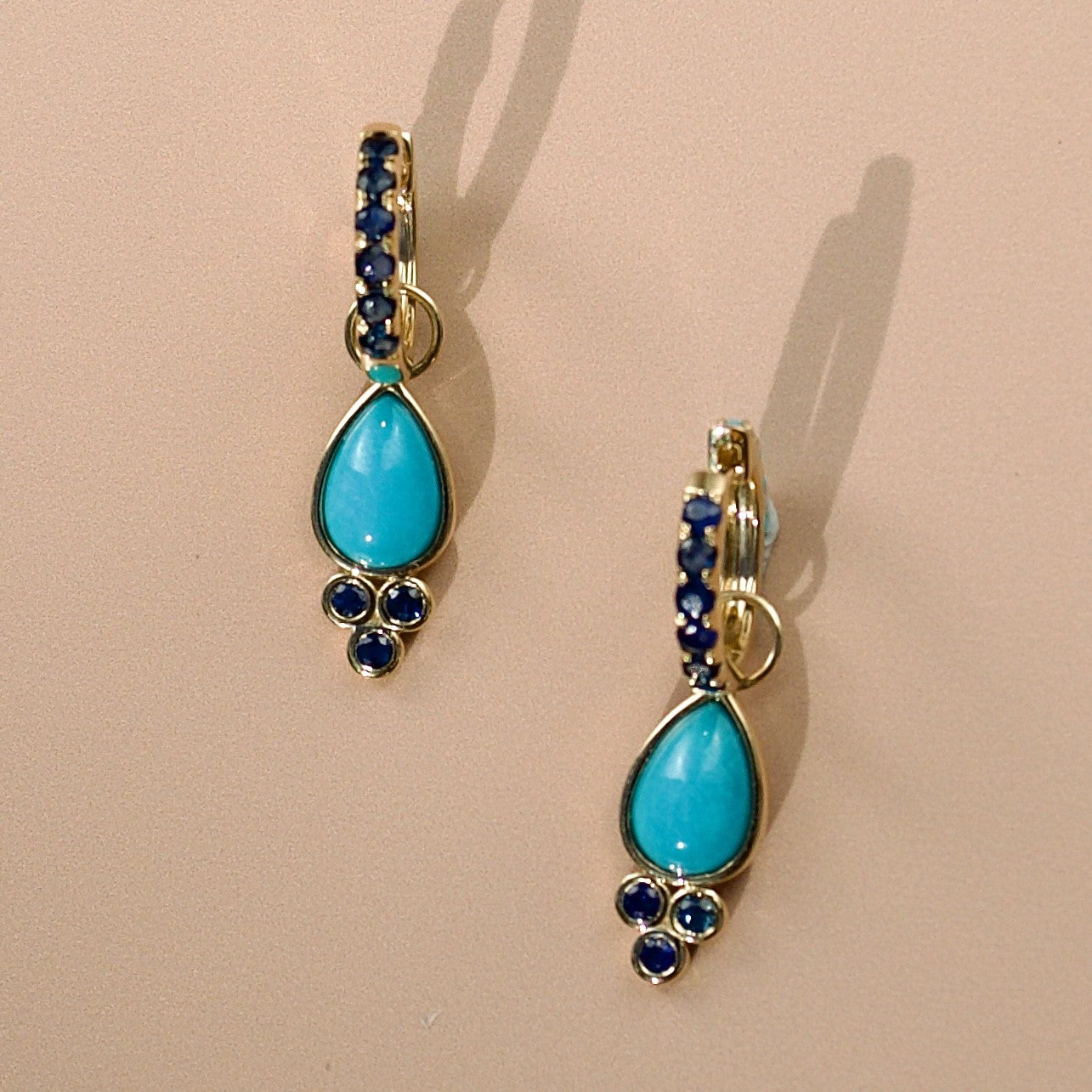 Charlotte Blue Sapphire and Turquoise Hoop Earrings with Drop Enhancers