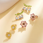 Carnation Flower Morganite, Pink Sapphire & Rhodolite Garnet Earrings