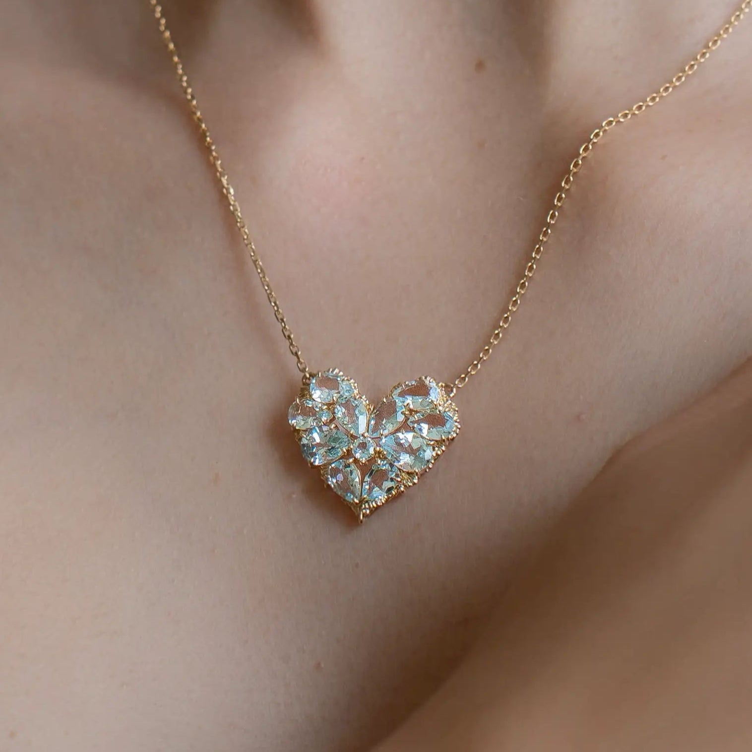 Fantasy Aquamarine Heart Pendant Necklace