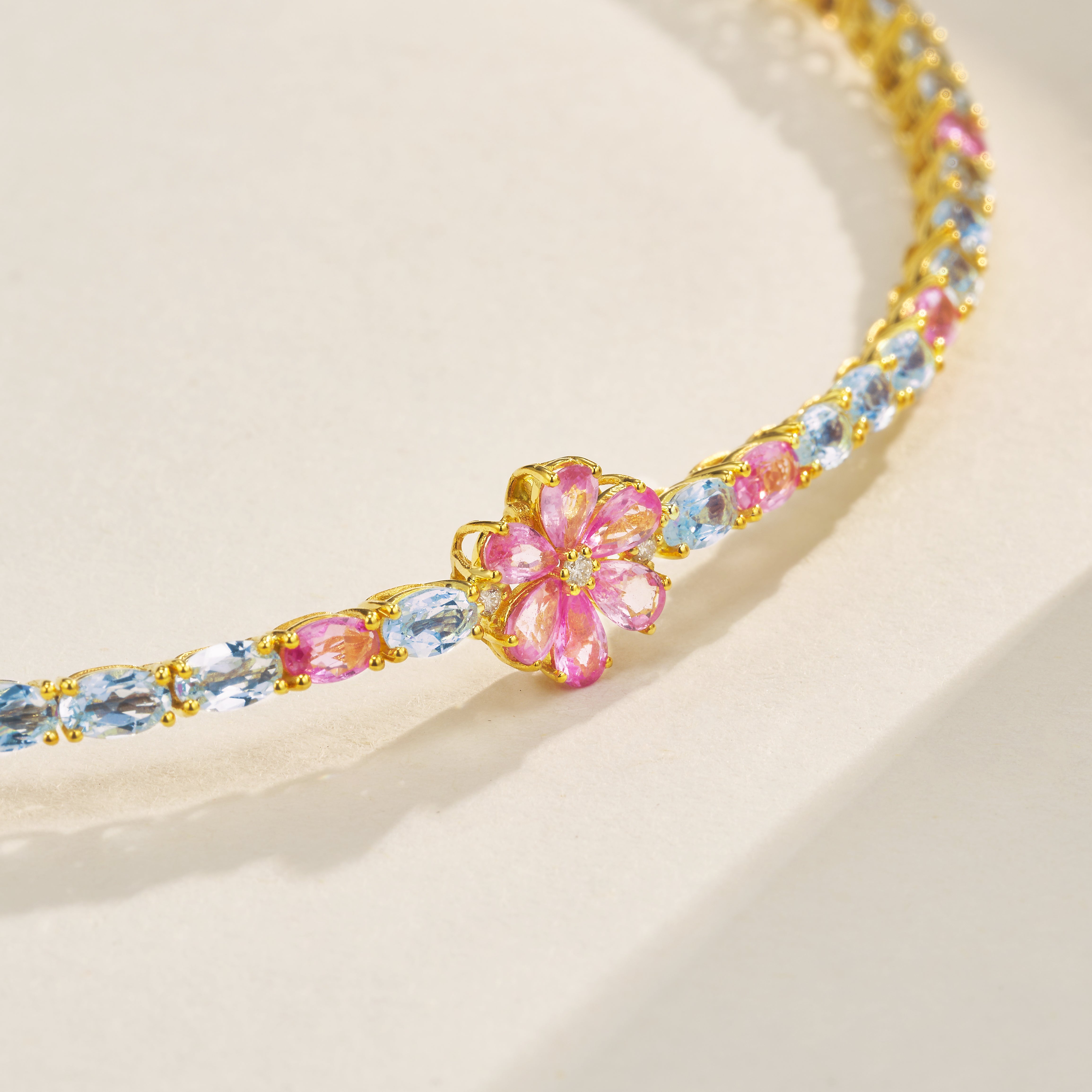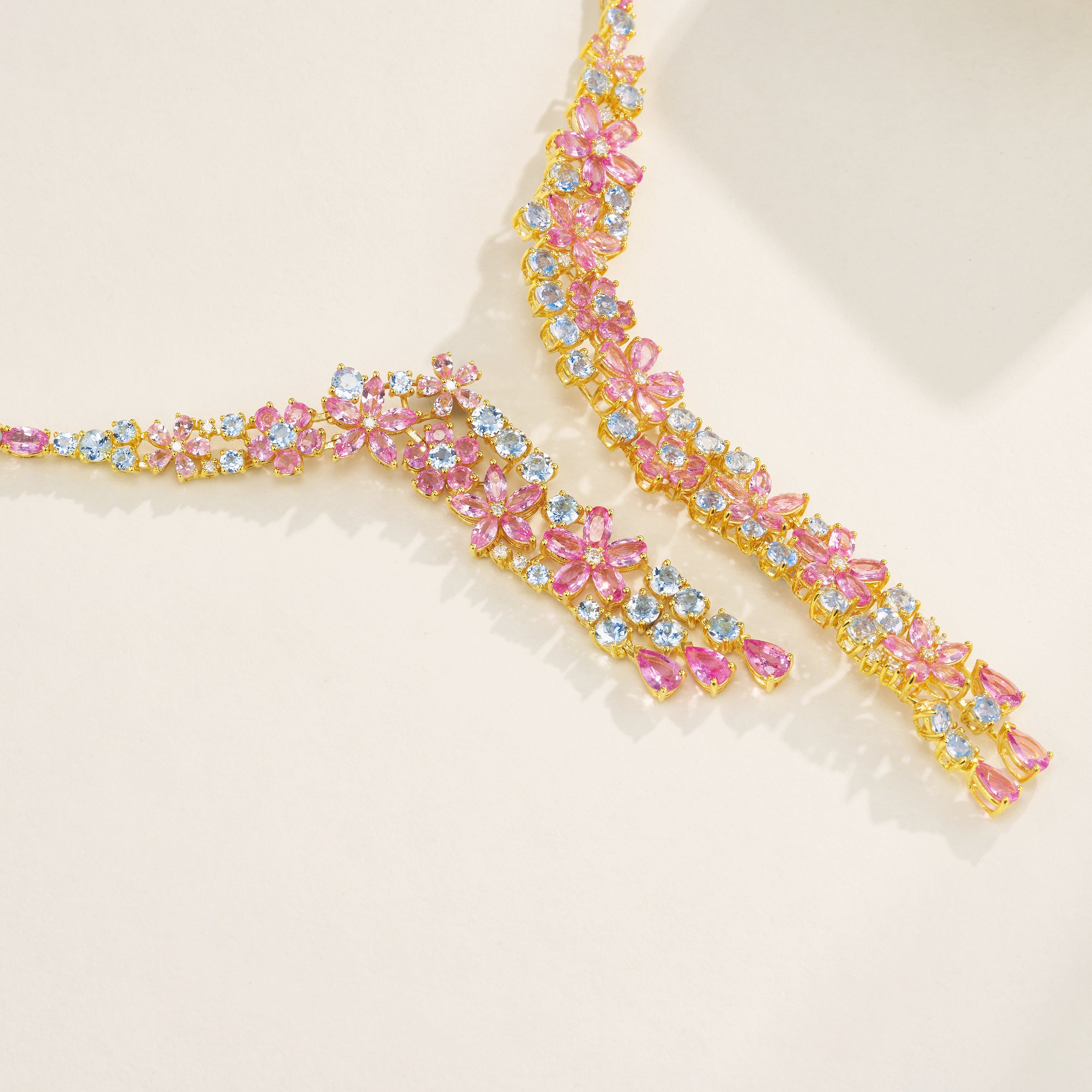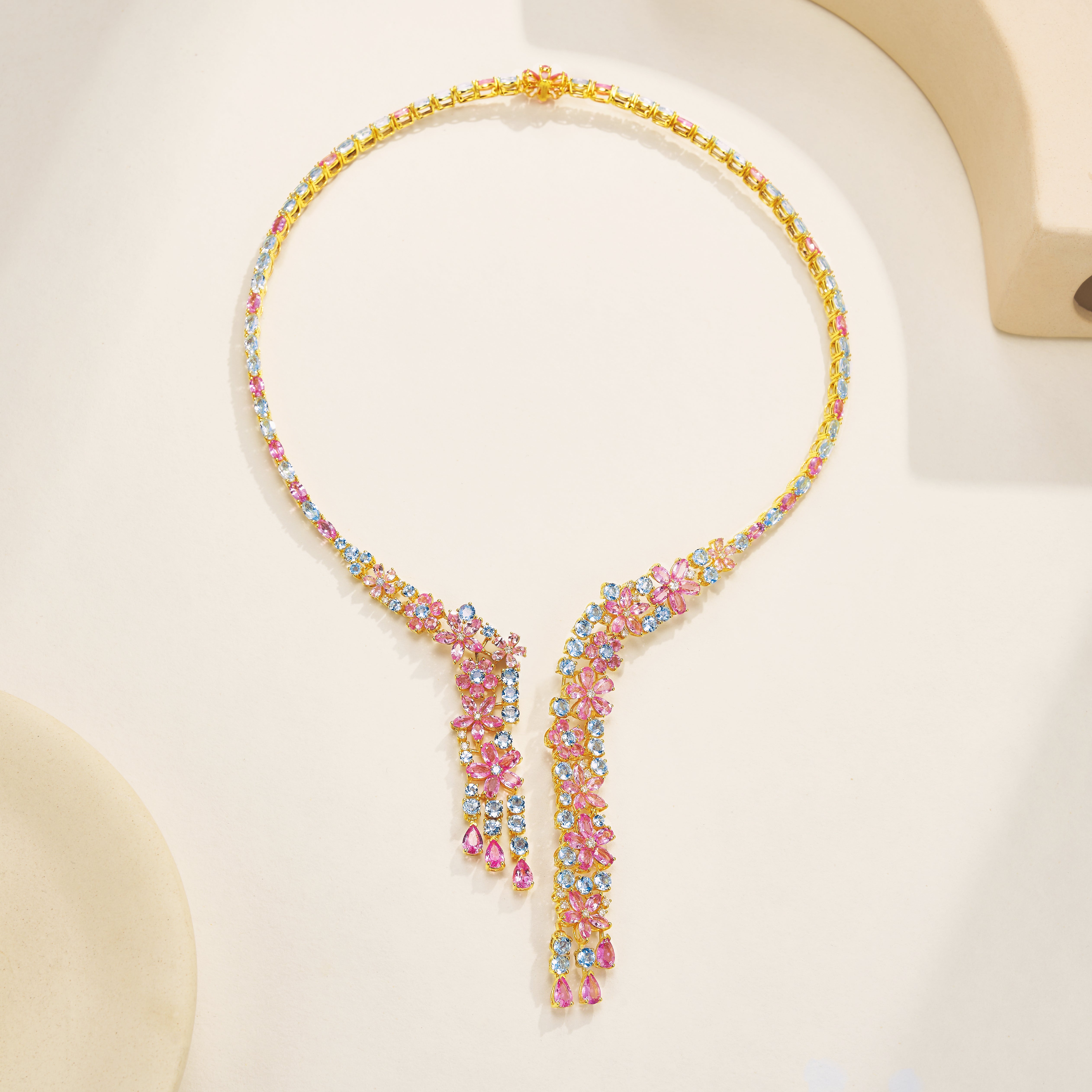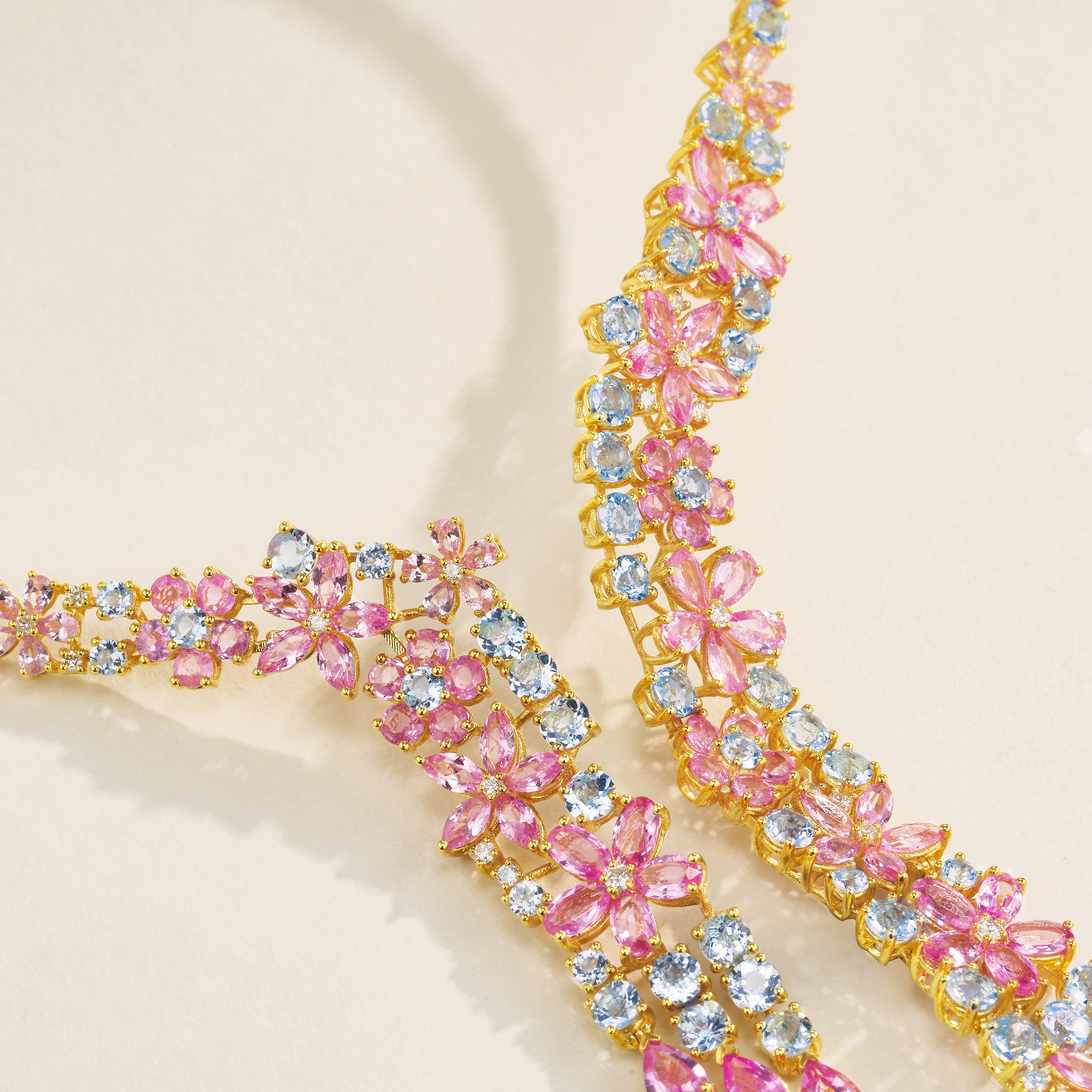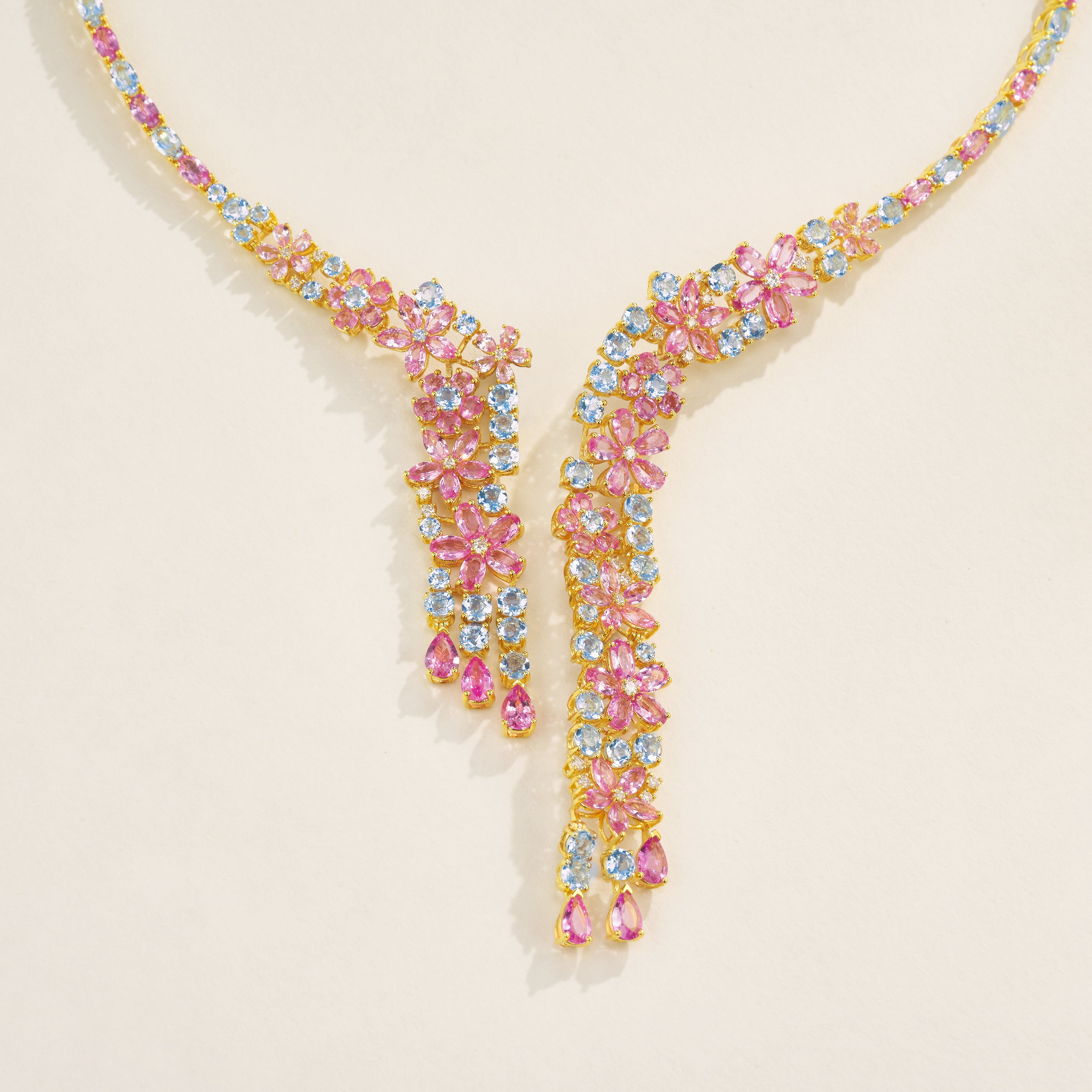 Galaxy Aquamarine Pink Sapphire Diamond Statement Necklace