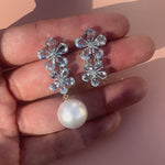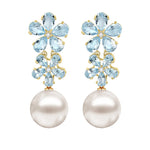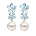 Aquamarine Diamond Double Blossom Pearl Convertible Drop Earrings