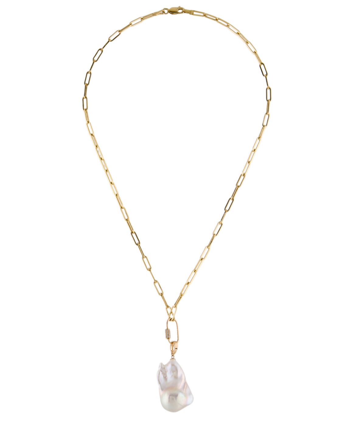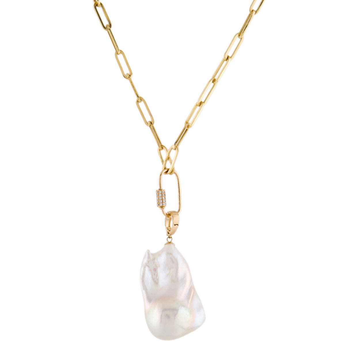 Baroque Pearl Diamond Link Convertible Paperclip Chain Necklace
