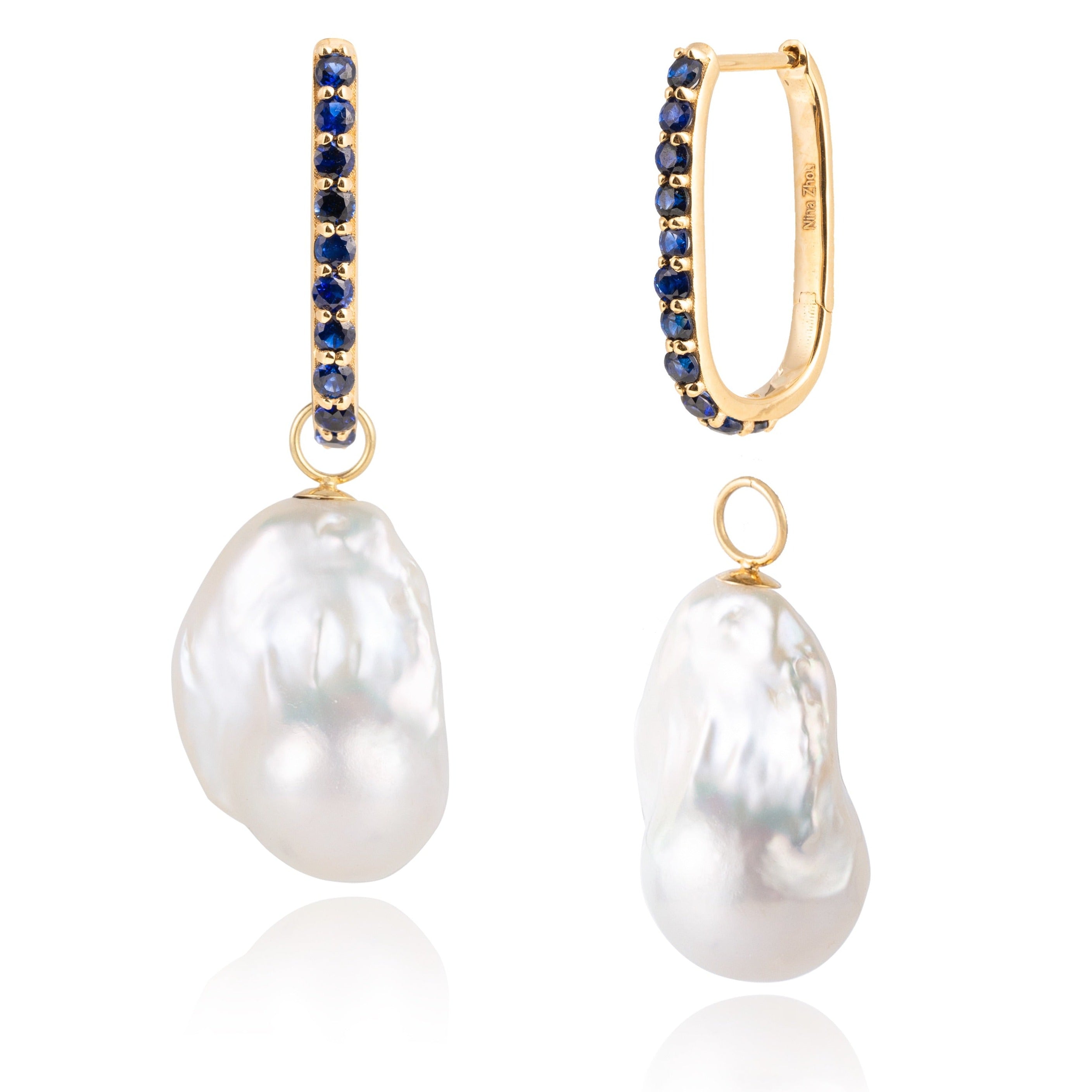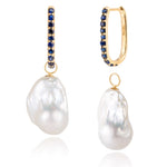 Isabella Sapphire Huggie Earrings with Baroque Pearl Drop Enhancers