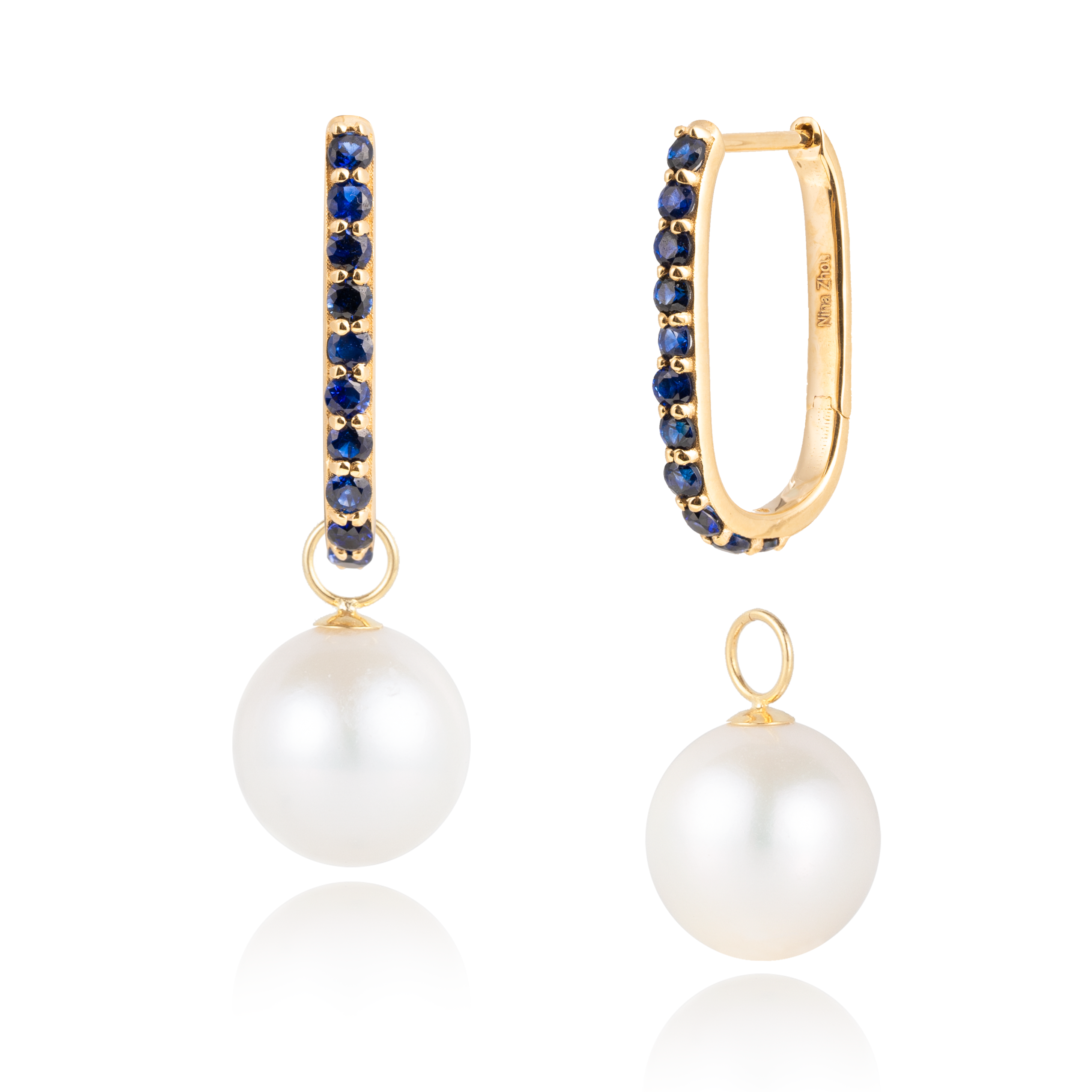 Isabella Sapphire Huggie Earrings with Pearl Drop Enhancers