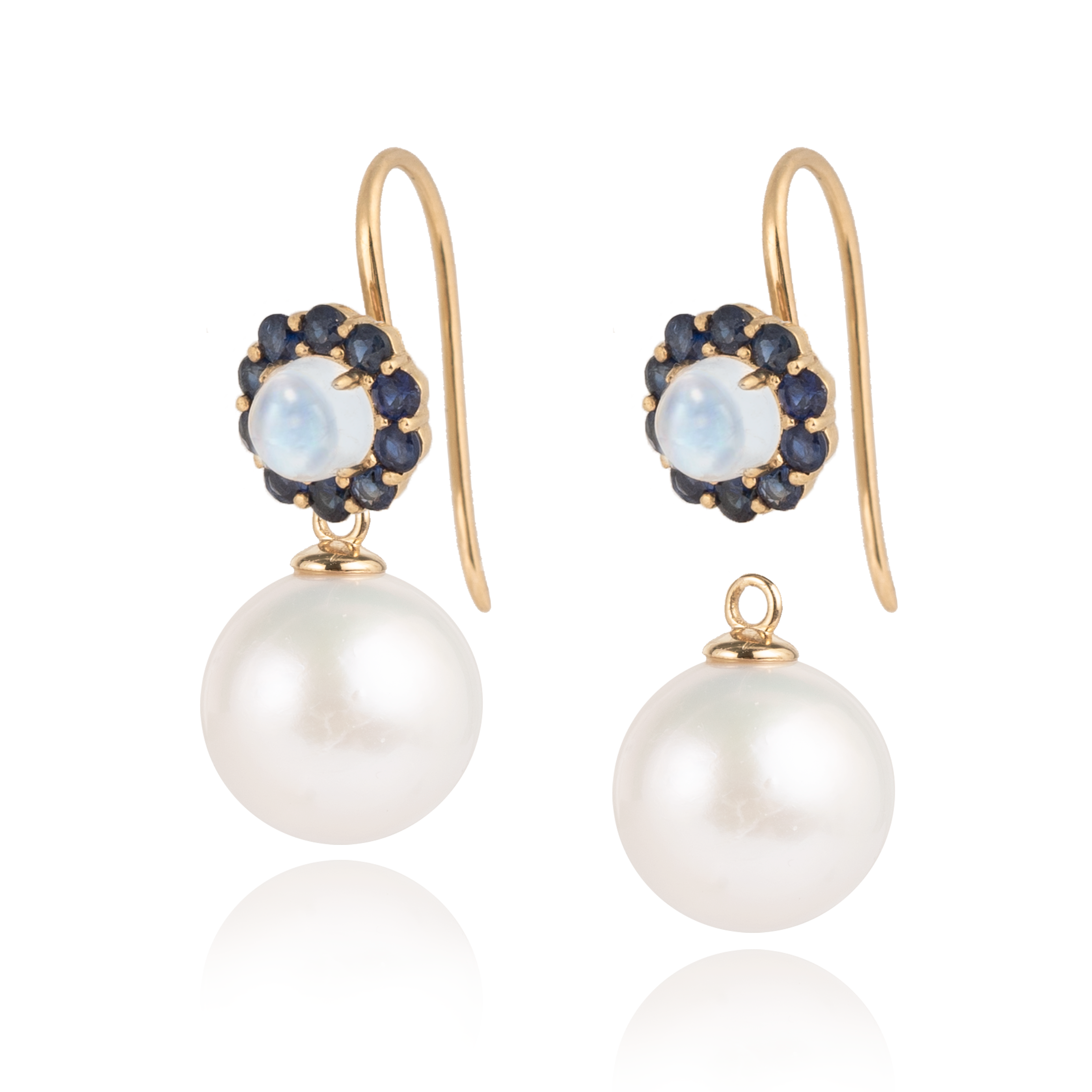 Harper Moonstone and Sapphire Cluster with Pearl Drop Earrings