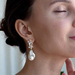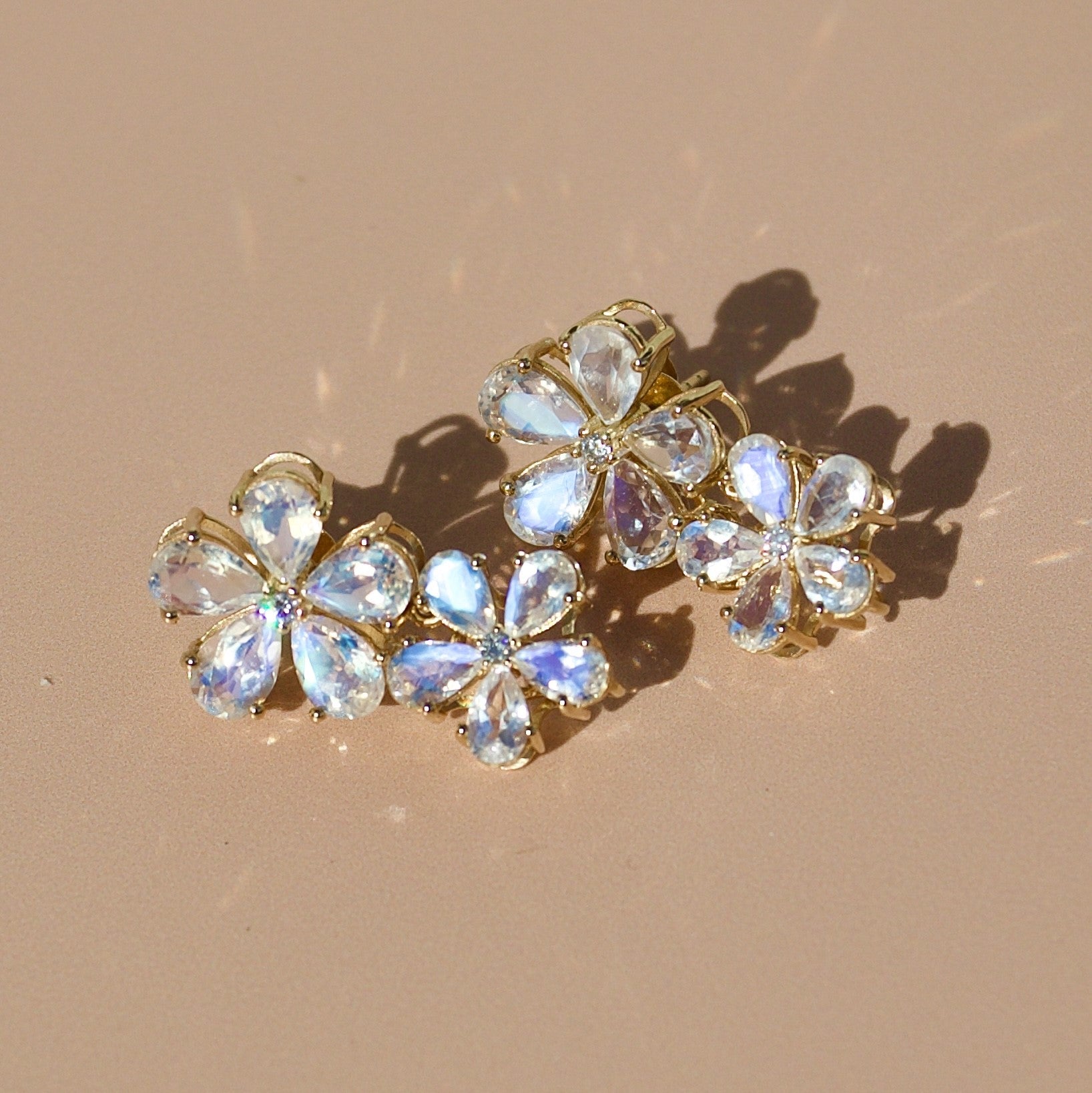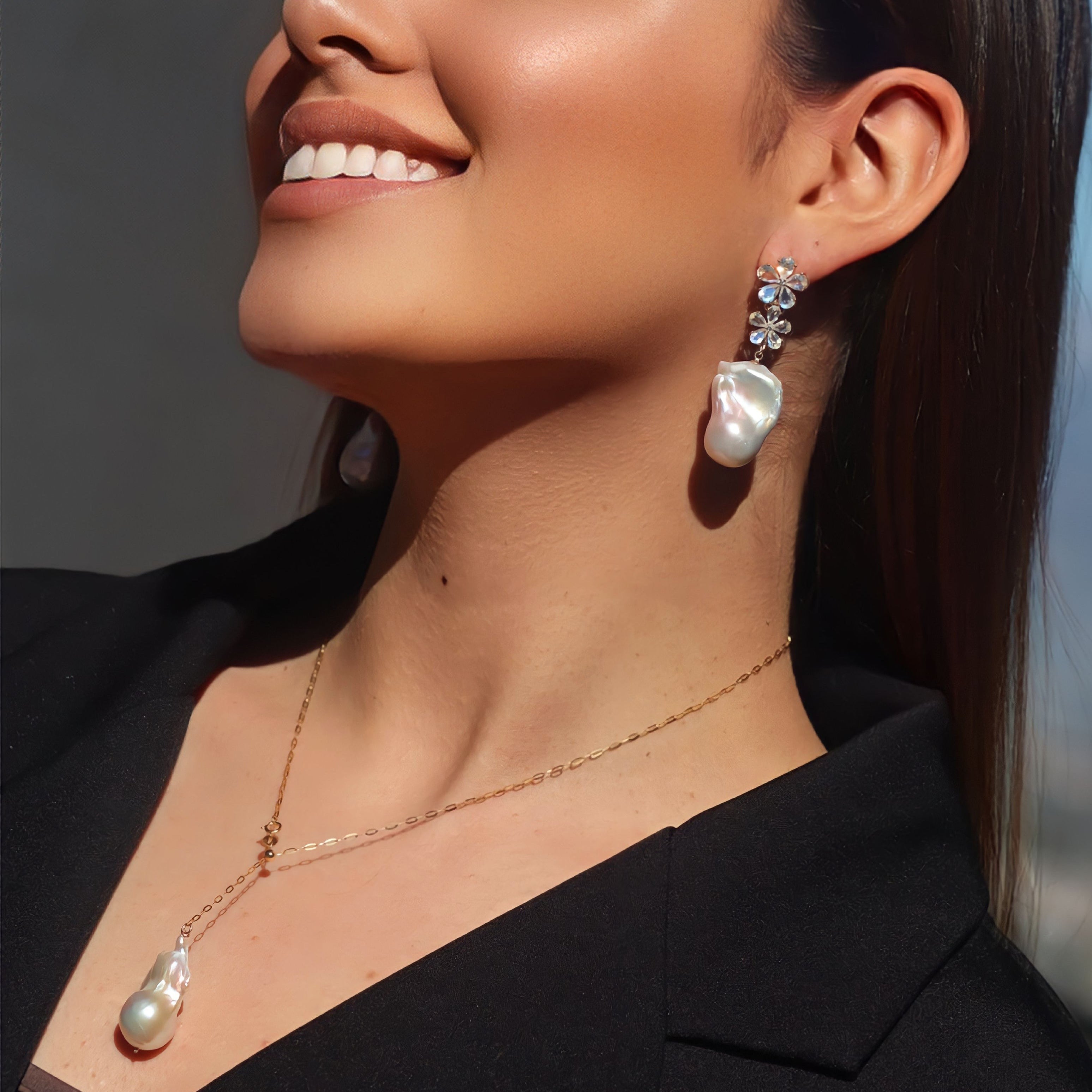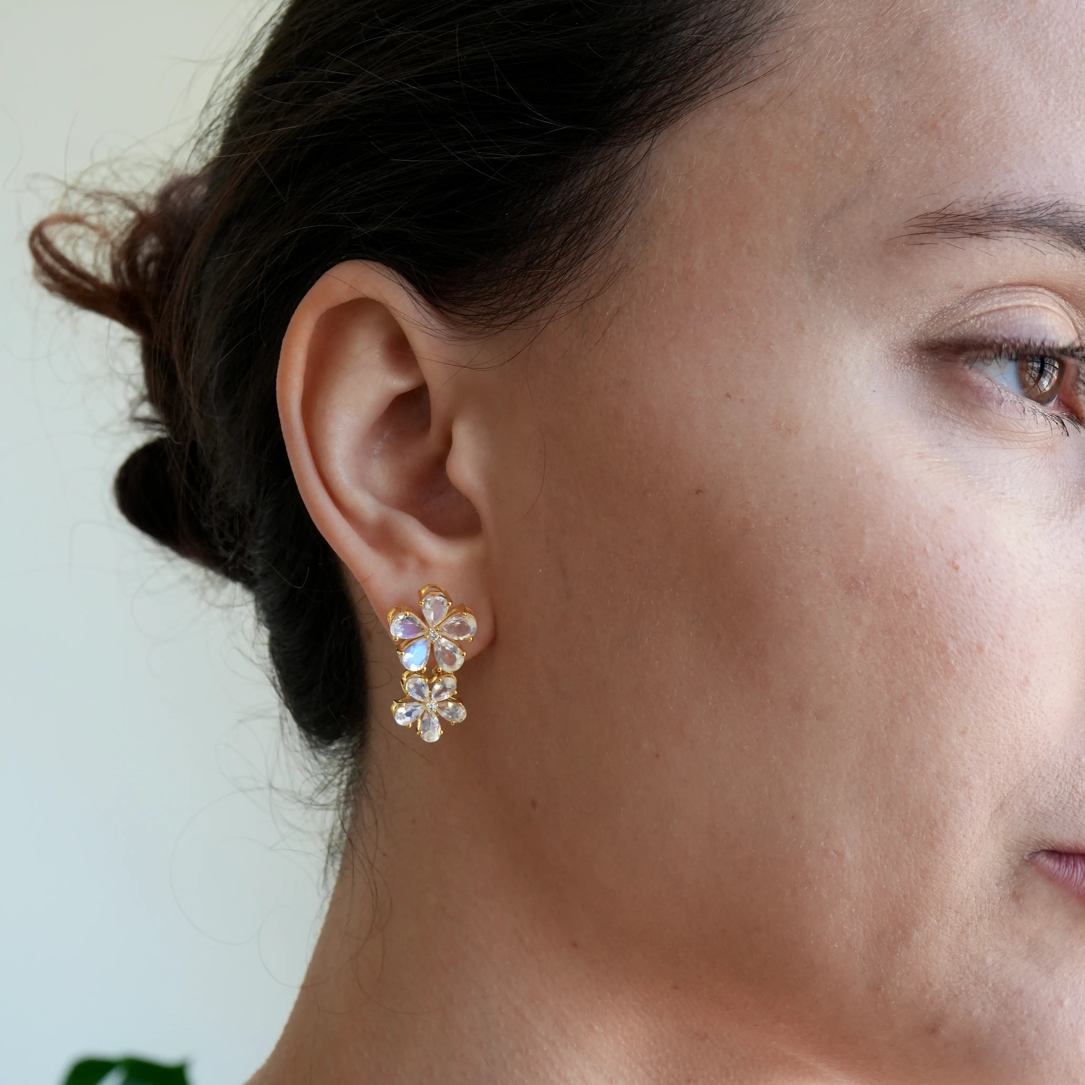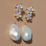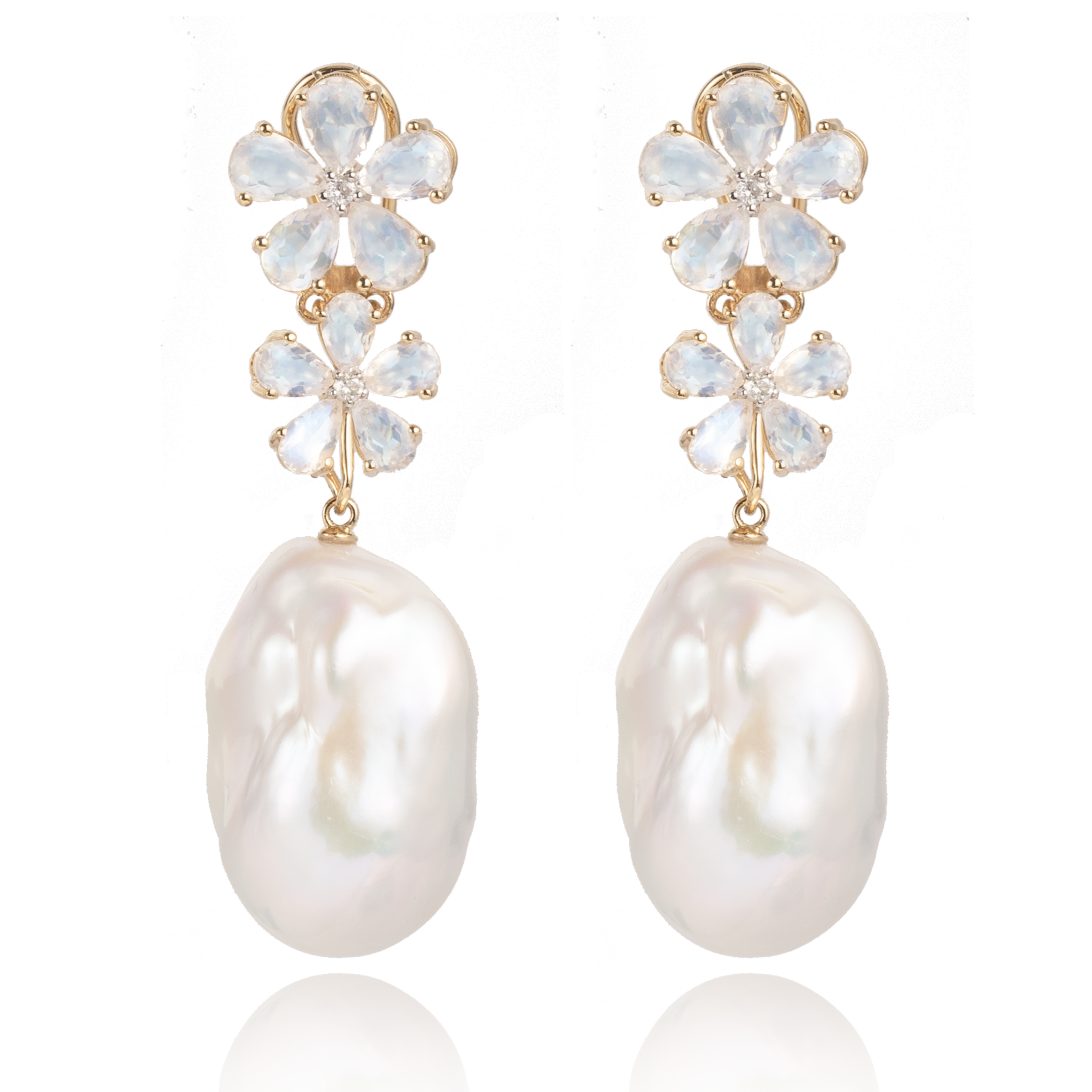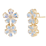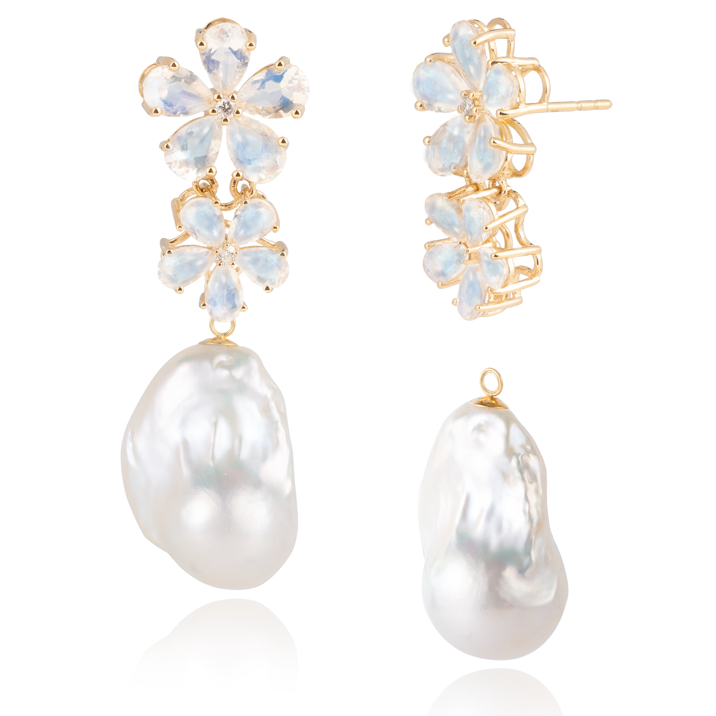 Moonstone Diamond Double Blossom Pearl Convertible Drop Earrings