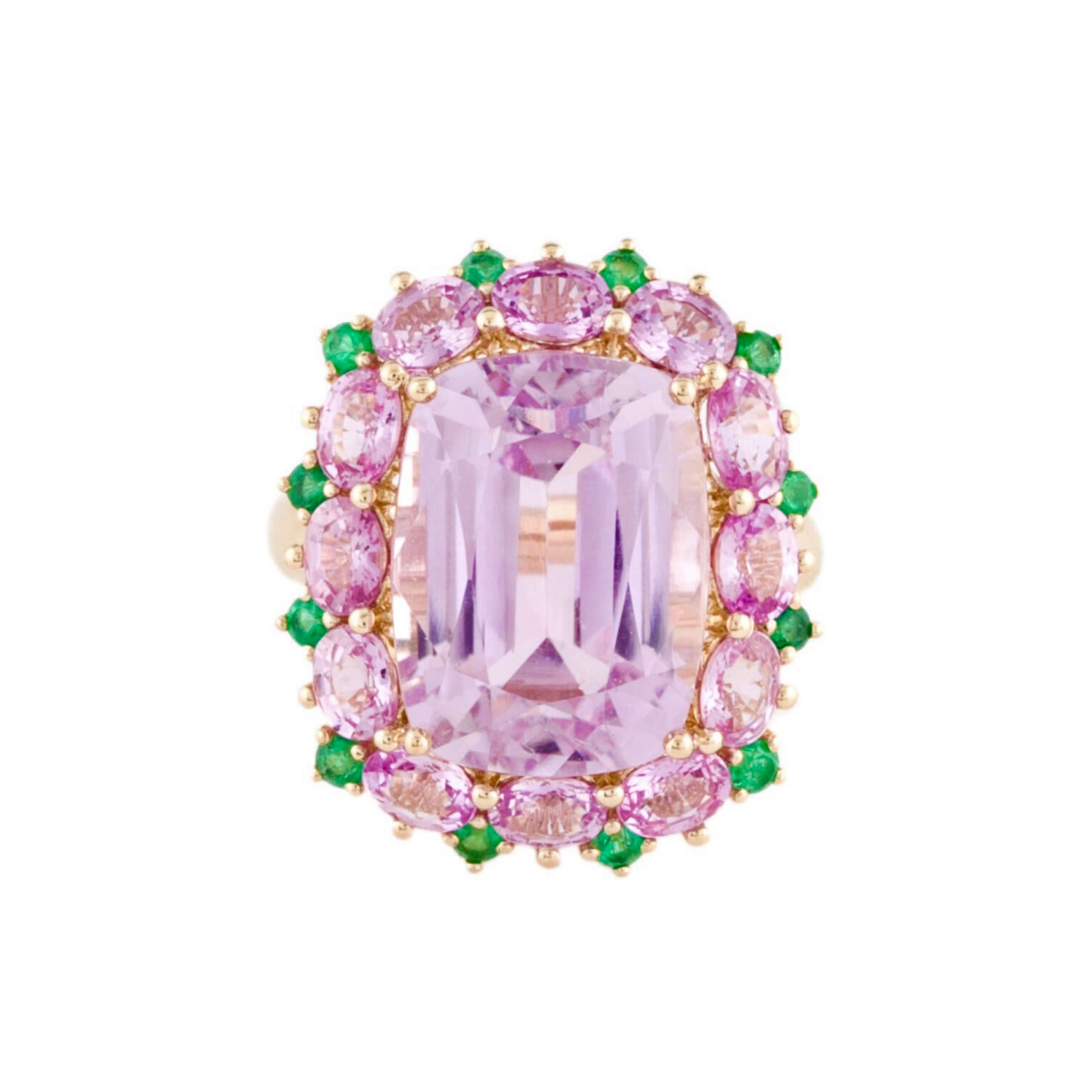 Katherine Kunzite Pink Sapphire and Emerald Cocktail Ring
