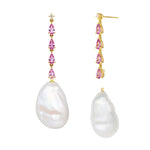 Rhythm Pink Sapphire Diamond and Baroque Pearl Drop Earrings