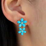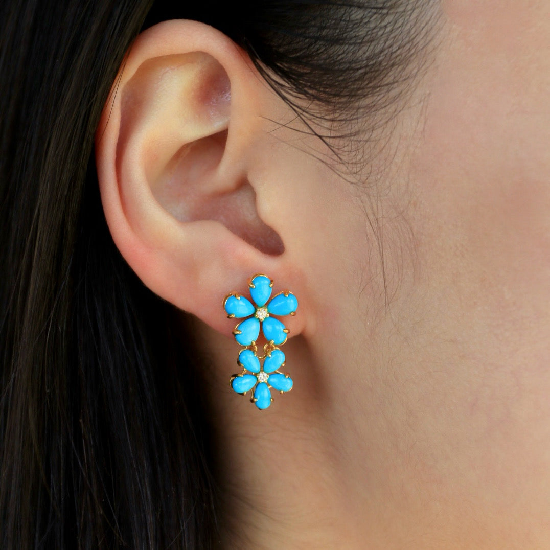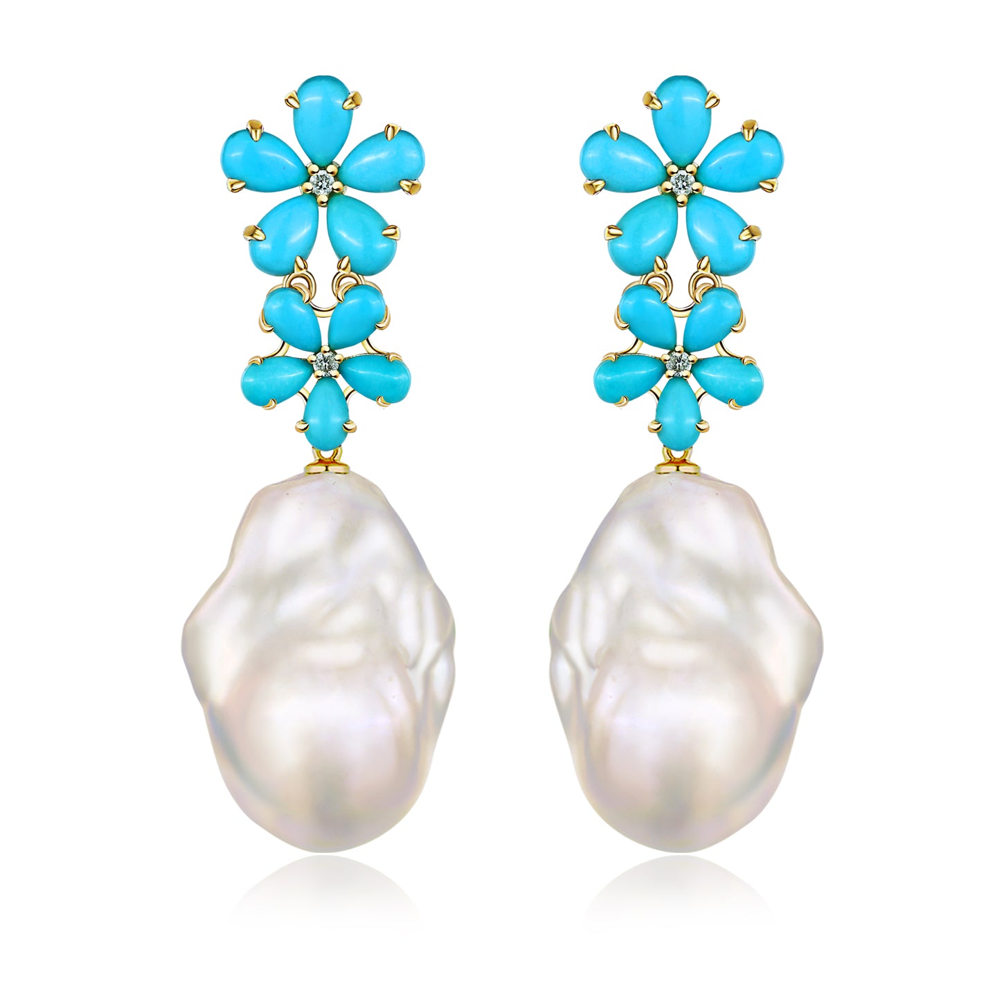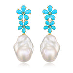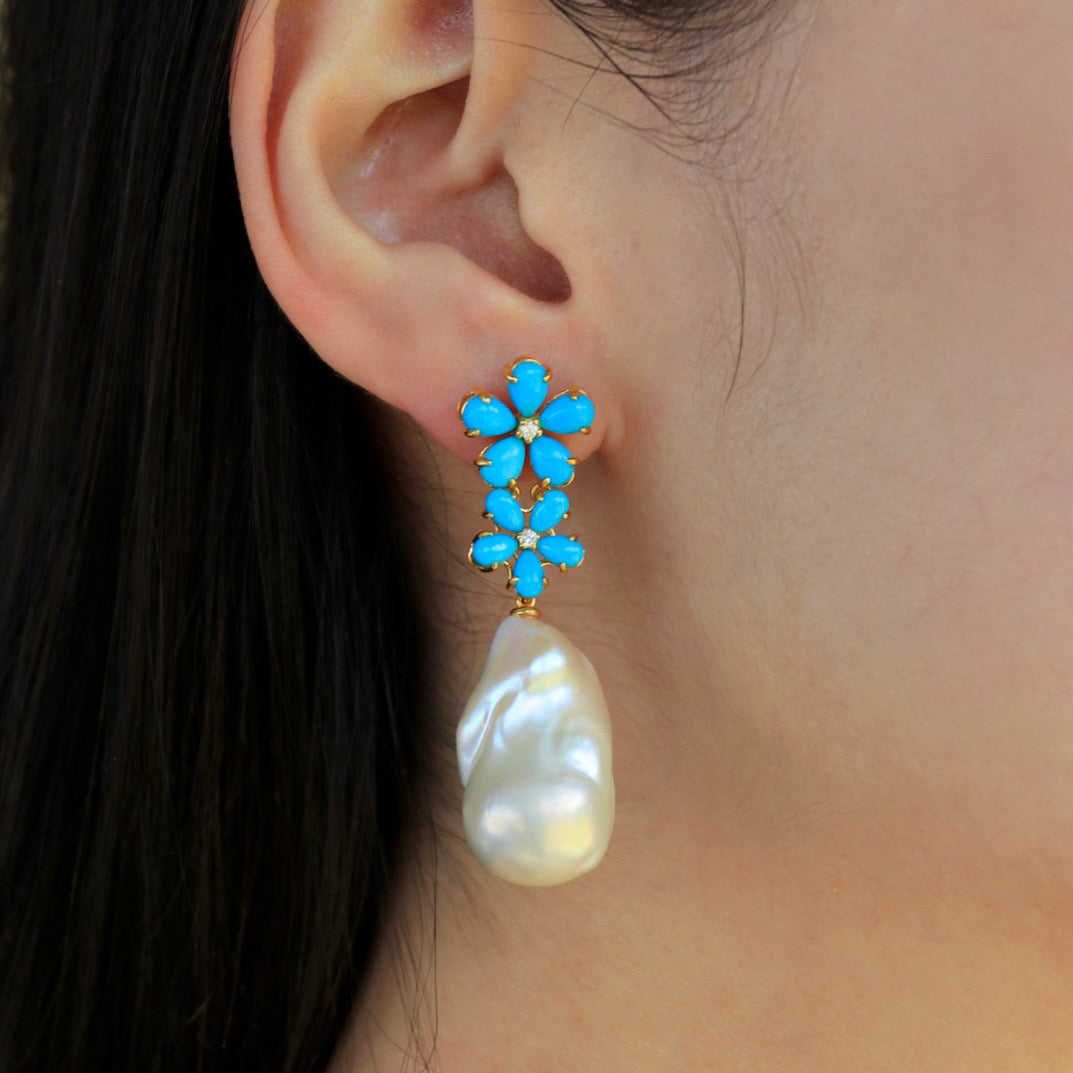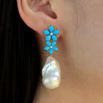 Turquoise Diamond Double Blossom Baroque Pearl Convertible Drop Earrings