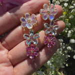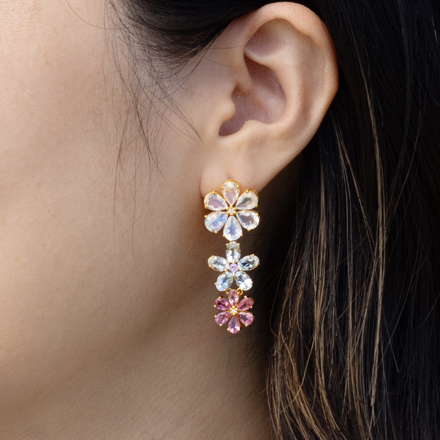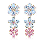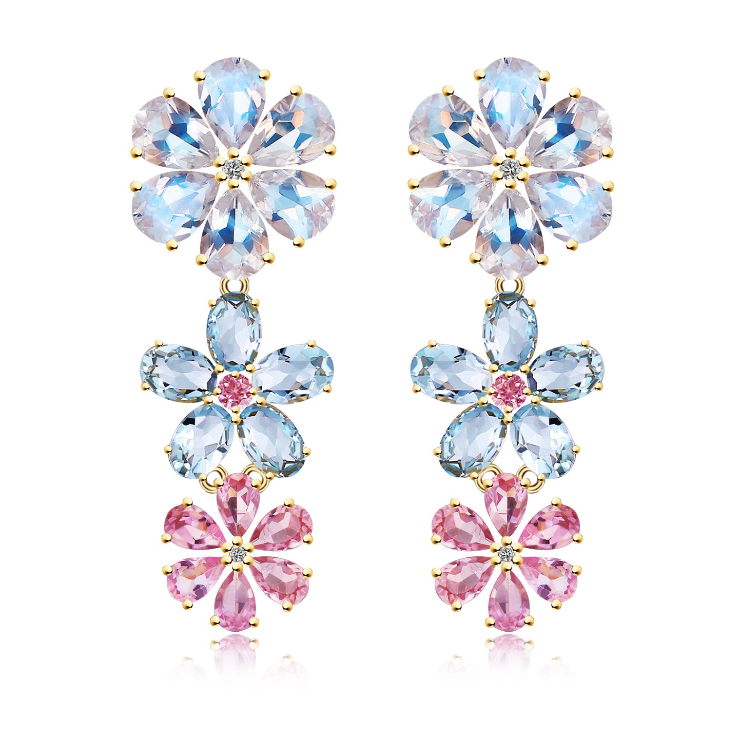 Moonstone Aquamarine Pink Sapphire diamond Blossom Earrings