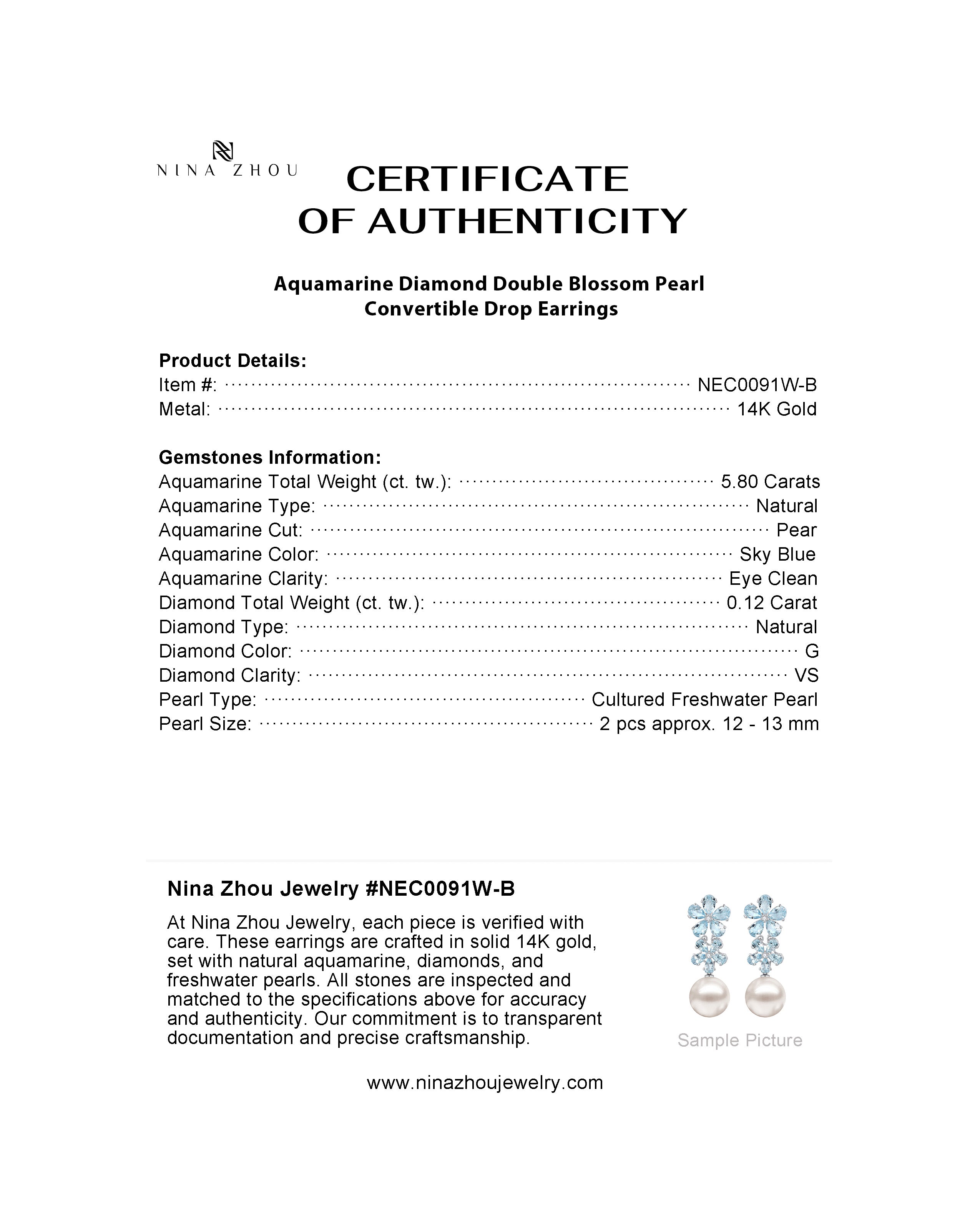 Aquamarine Diamond Double Blossom Pearl Convertible Drop Earrings