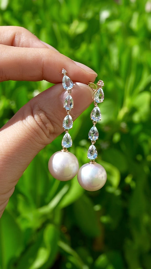 Rhythm Aquamarine Diamond and Baroque Pearl Drop Earrings
