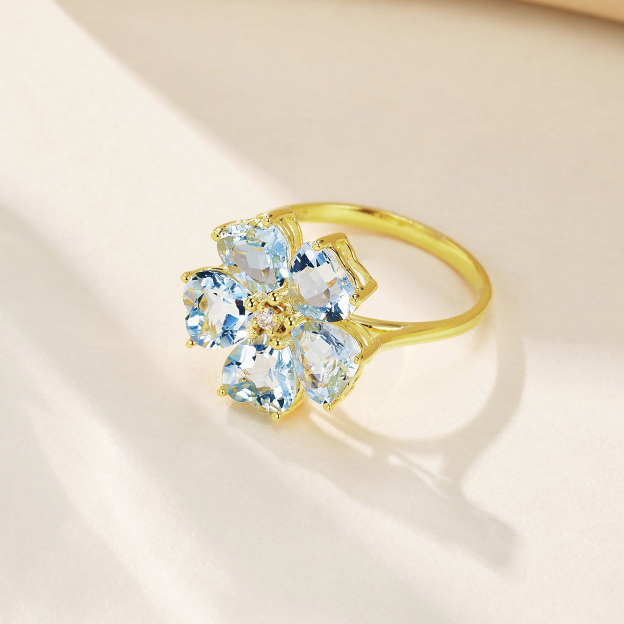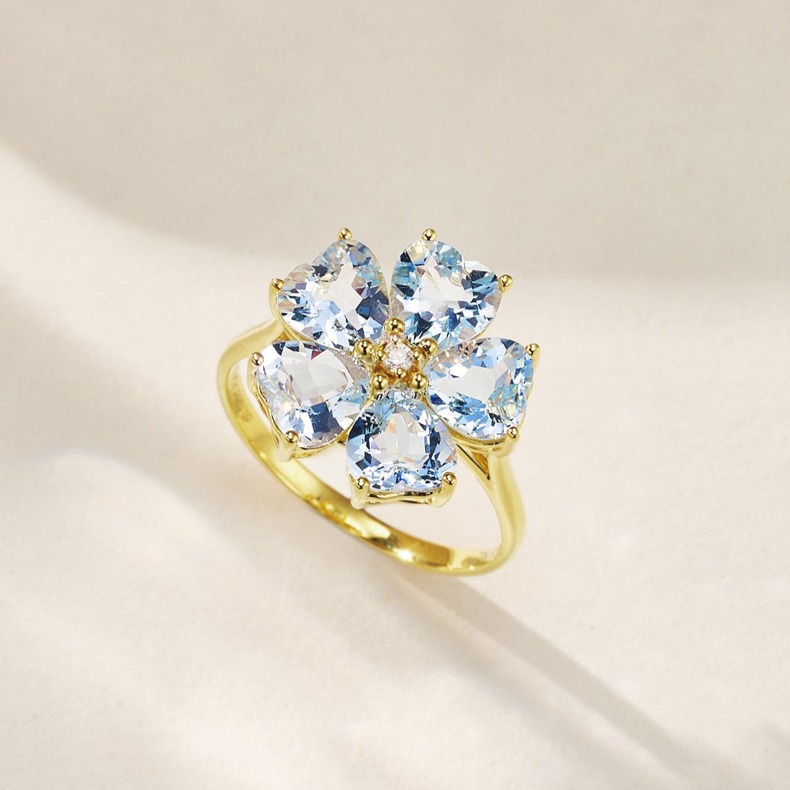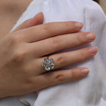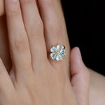 Aquamarine Diamond Cherry Blossom Cocktail Ring