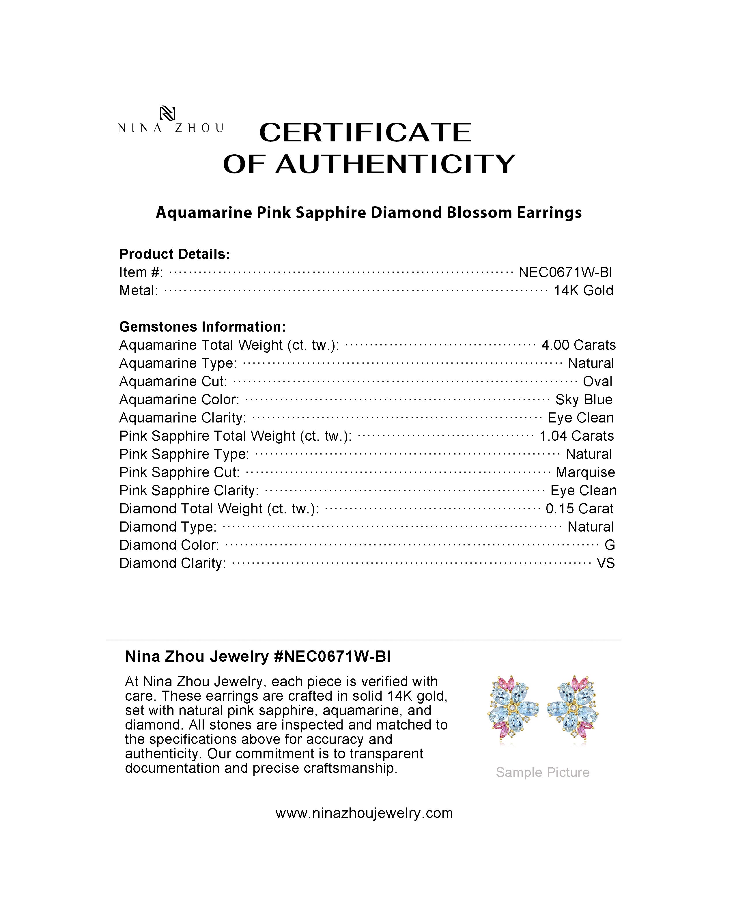 Aquamarine Pink Sapphire Diamond Blossom Earrings