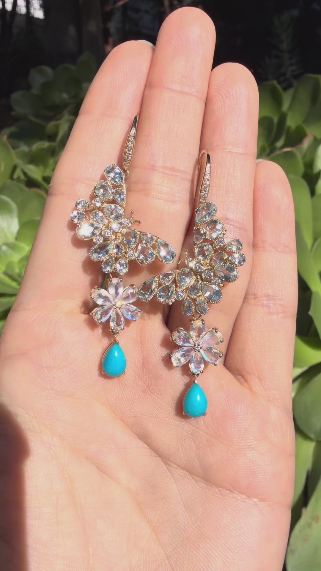 Butterfly Blossom Aquamarine, Moonstone, Turquoise & Diamond Convertible Drop Earrings