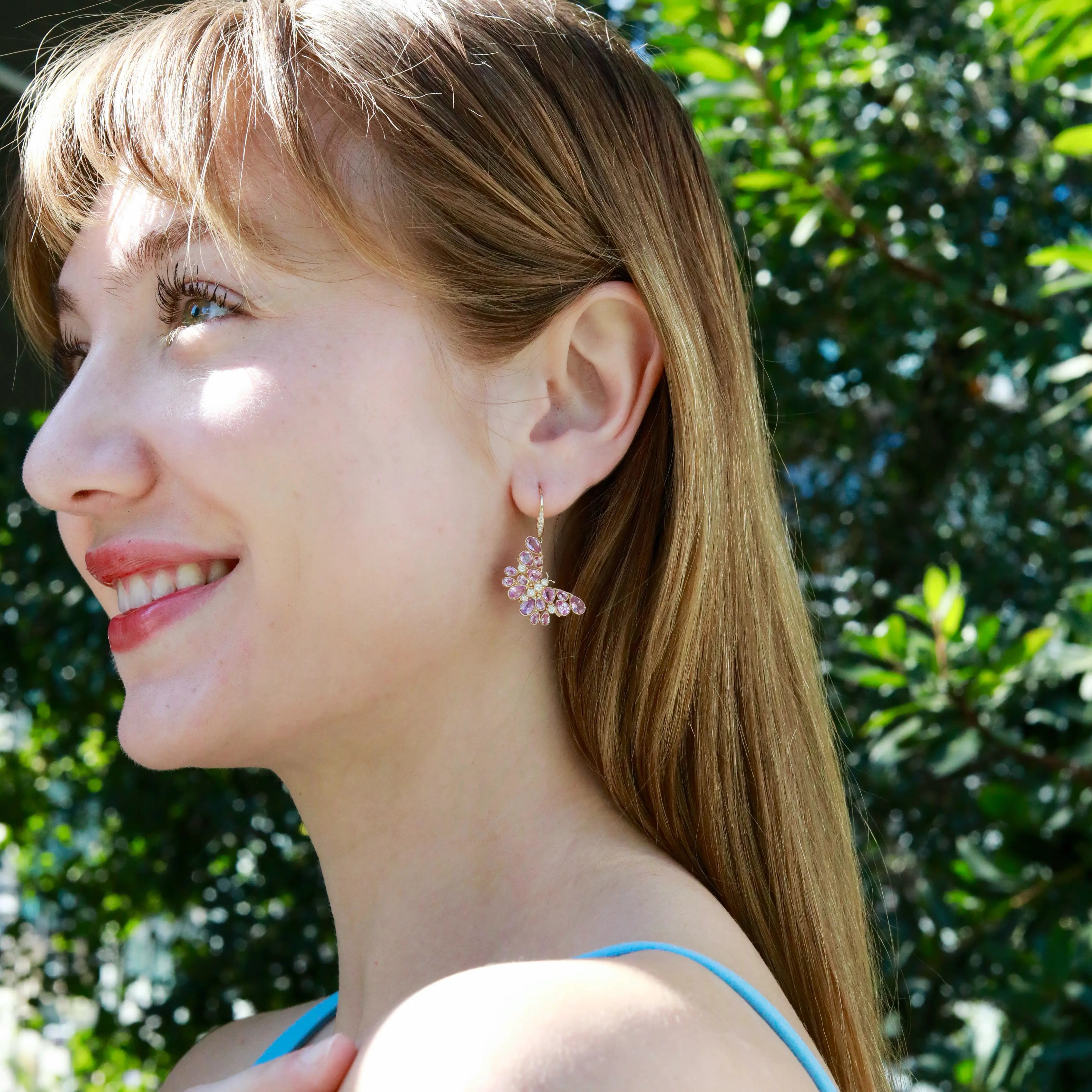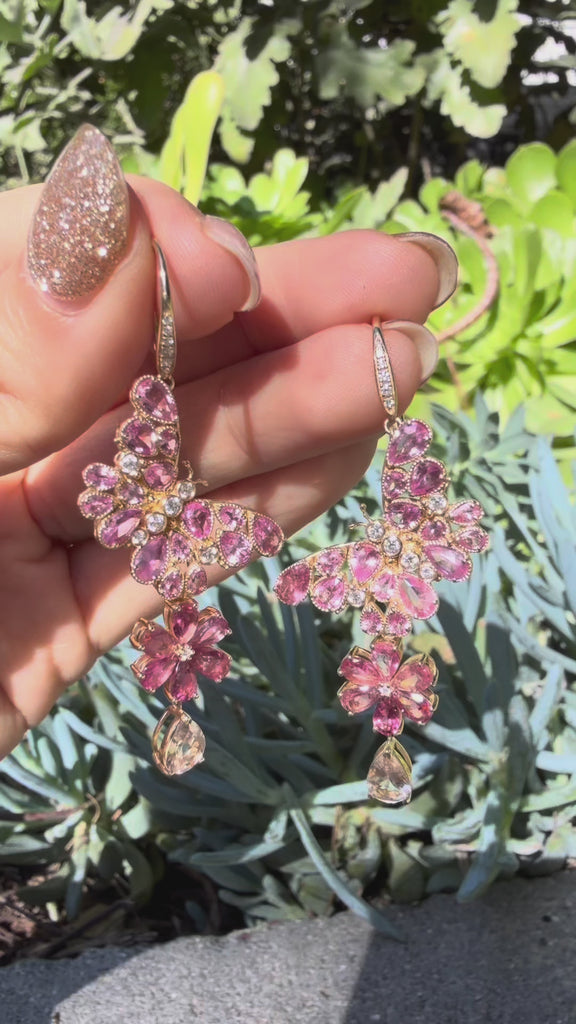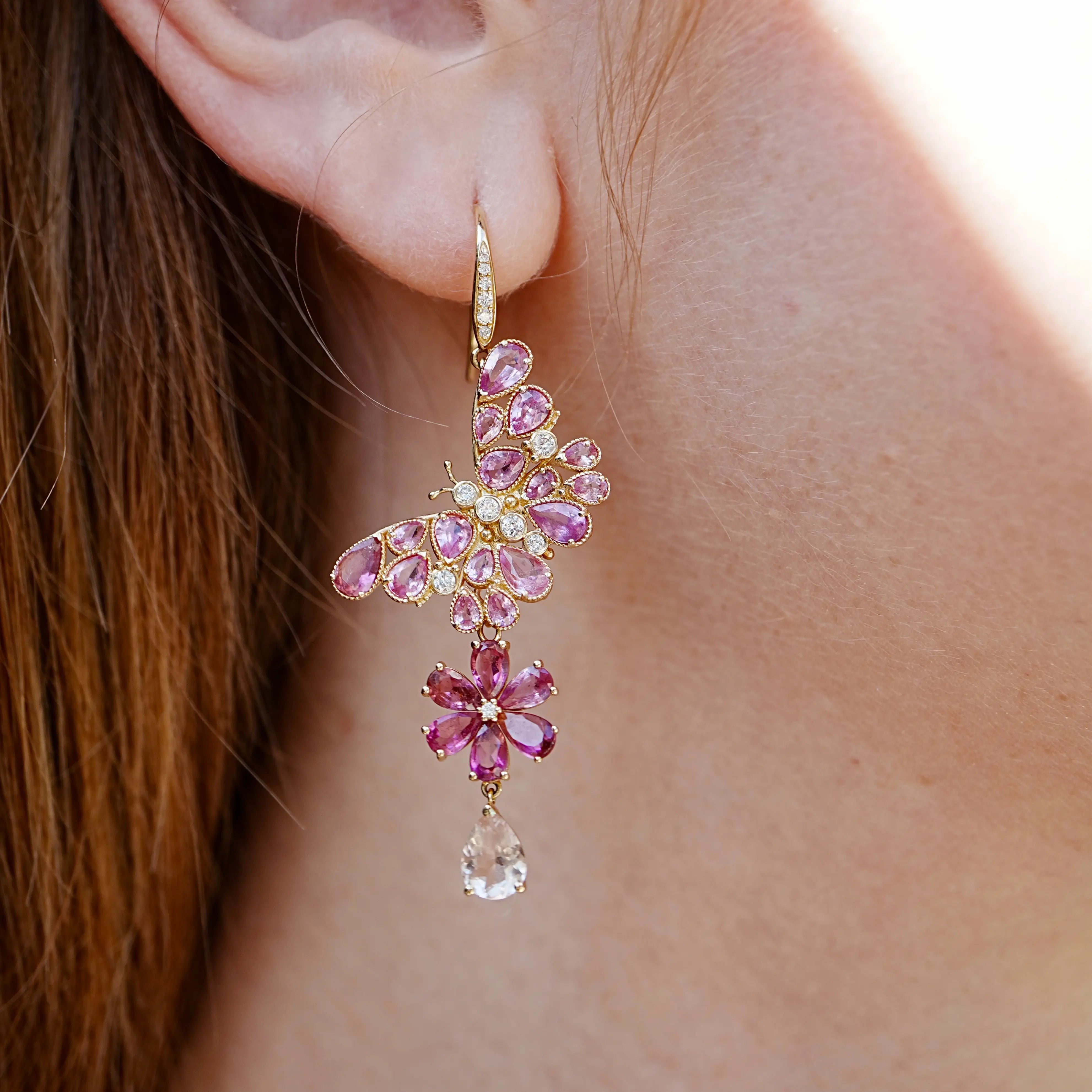 Butterfly Blossom Pink Sapphire, Tourmaline, Morganite & Diamond Convertible Drop Earrings