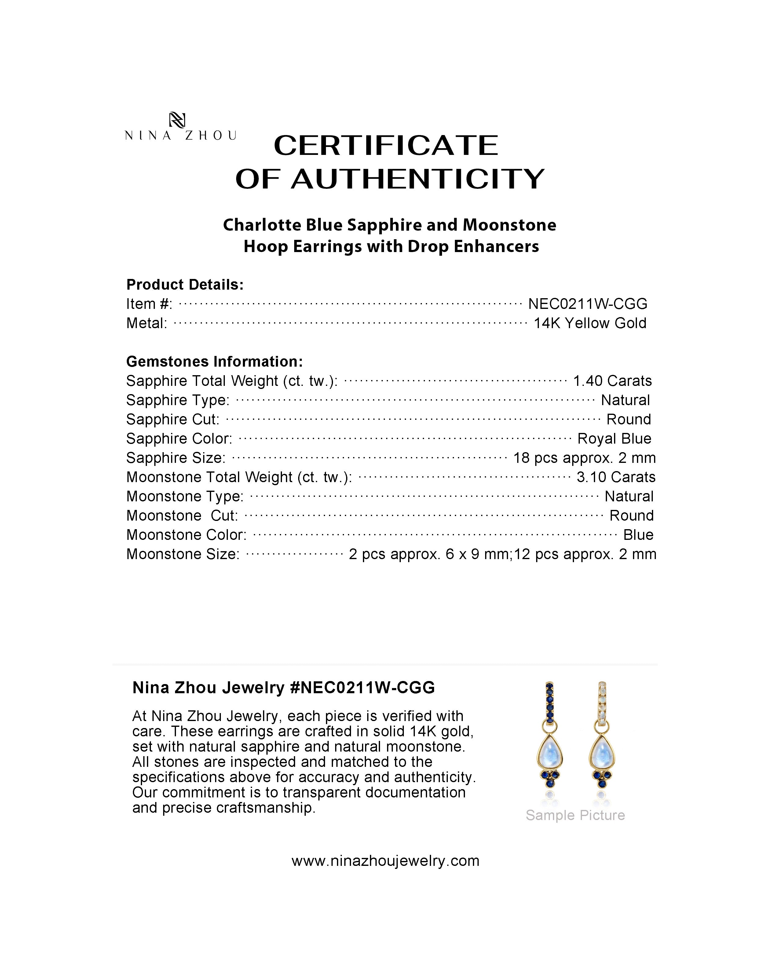 Charlotte Blue Sapphire and Moonstone Hoop Earrings with Drop Enhancers