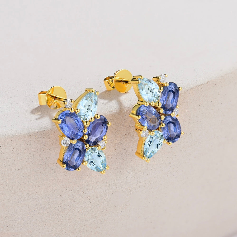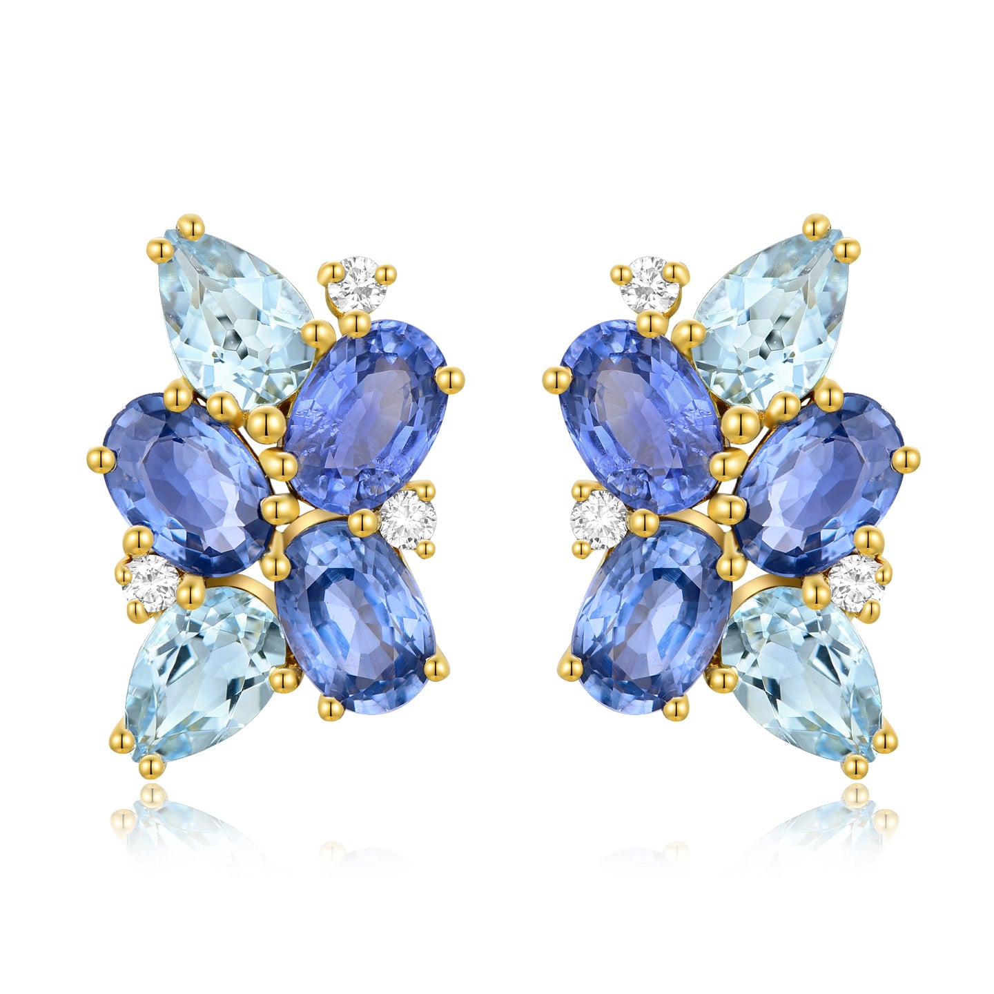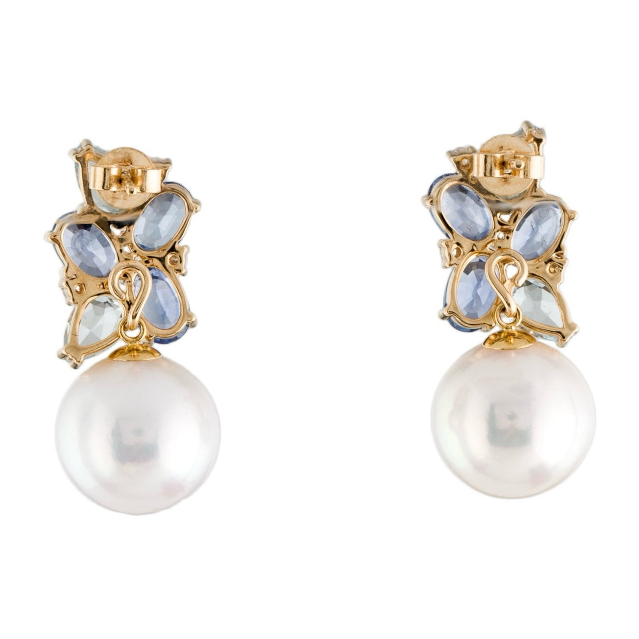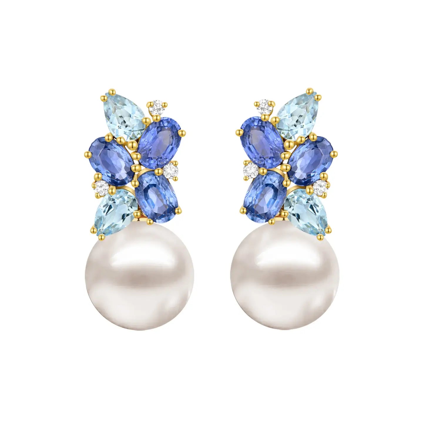 Elizabeth Sapphire, Aquamarine and Diamond Cluster Pearl Convertible Drop Earrings