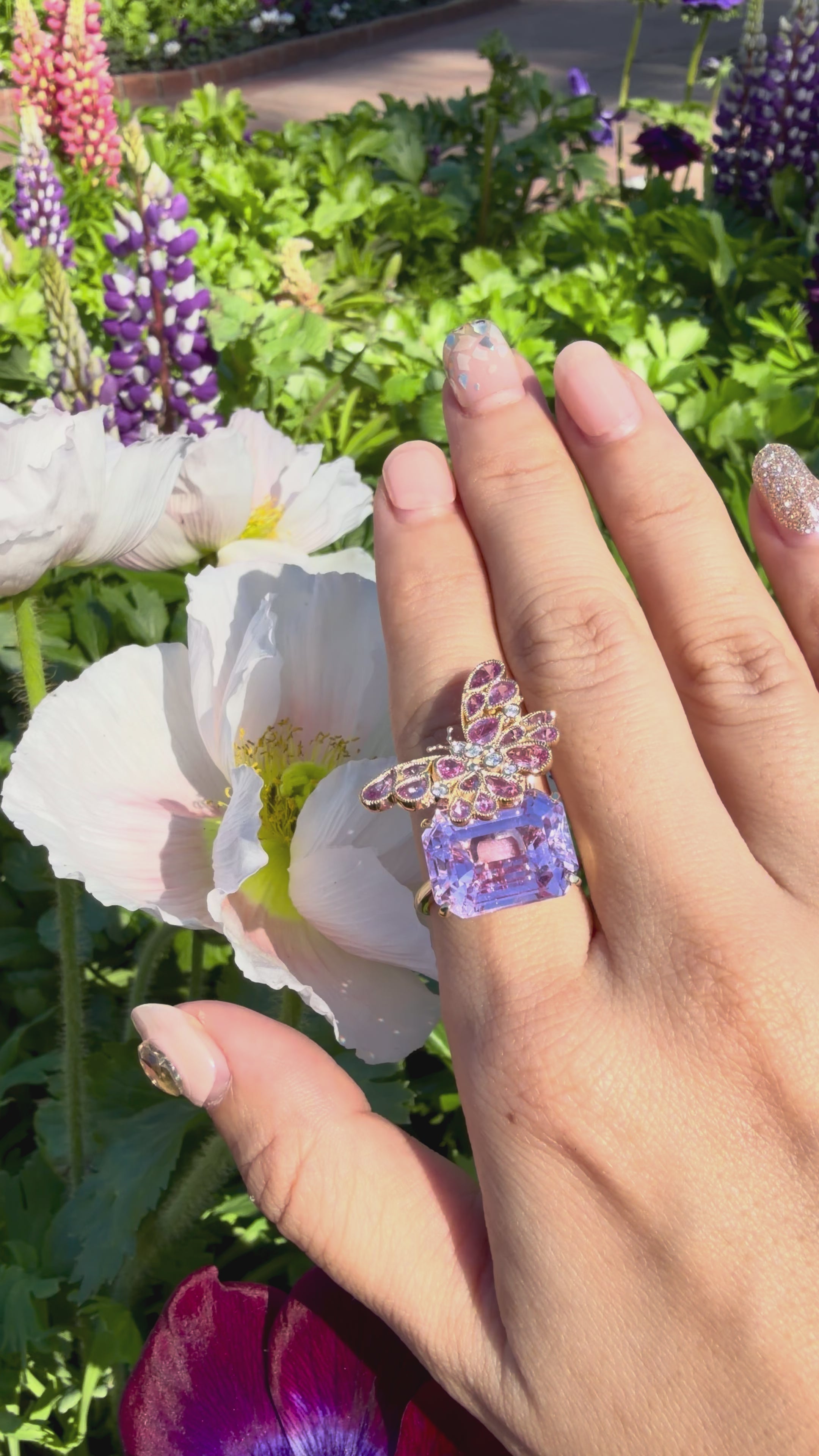 Pink Sapphire Diamond Butterfly on Kunzite Ring (One-of-a-Kind)