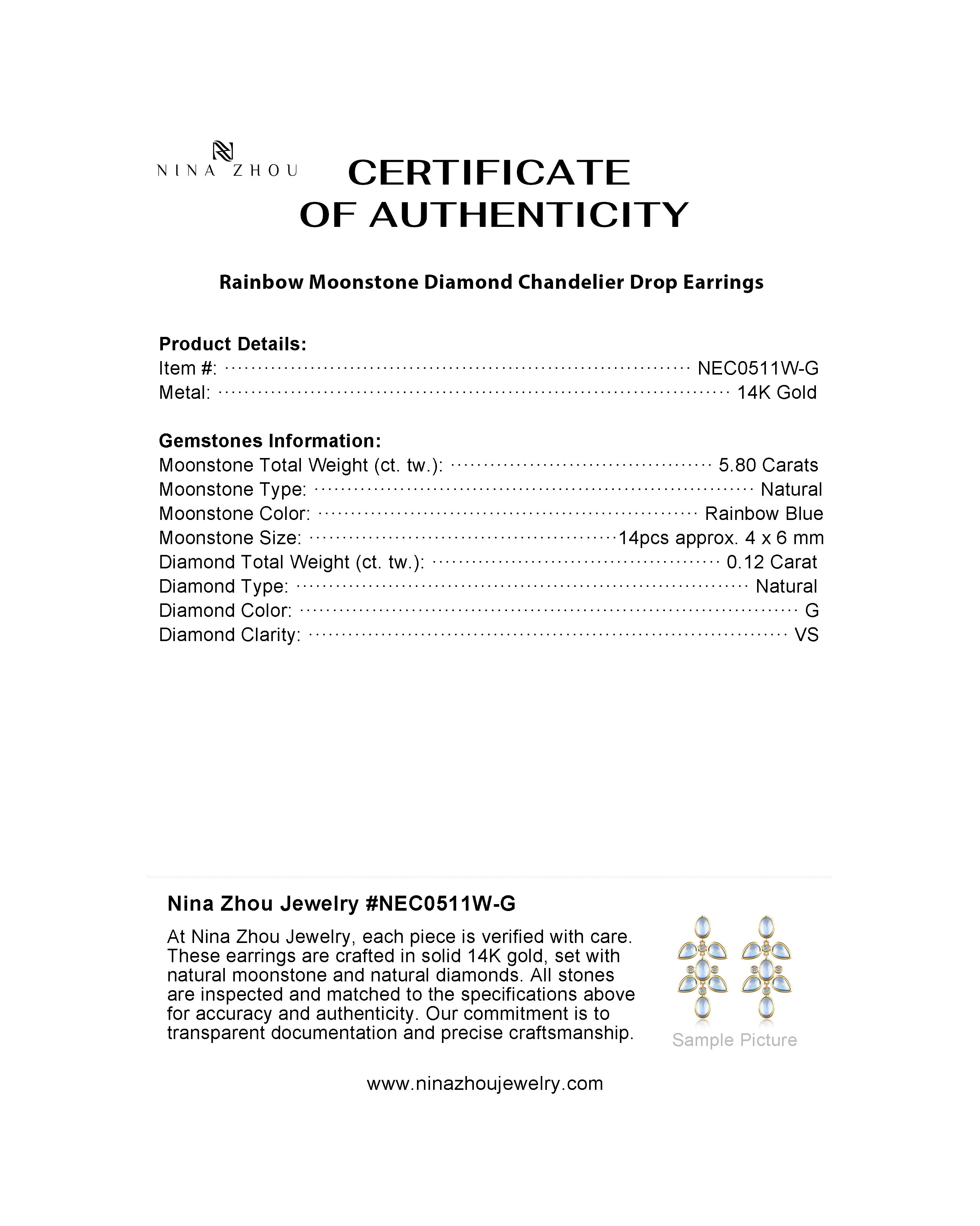 Rainbow Moonstone Diamond Chandelier Drop Earrings
