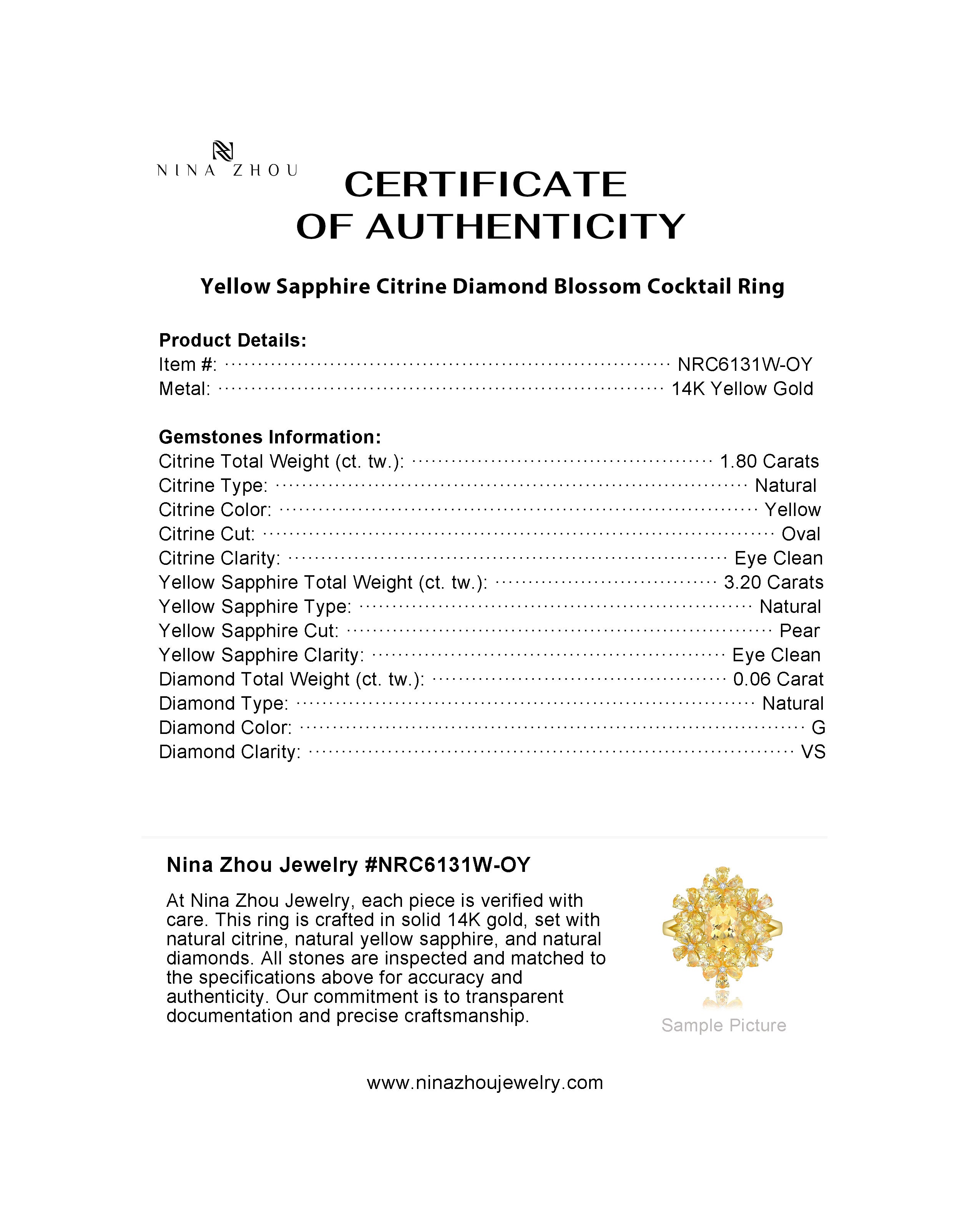 Yellow Sapphire Citrine Diamond Blossom Cocktail Ring